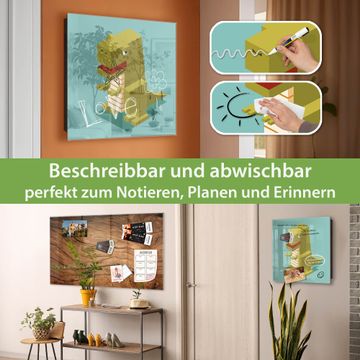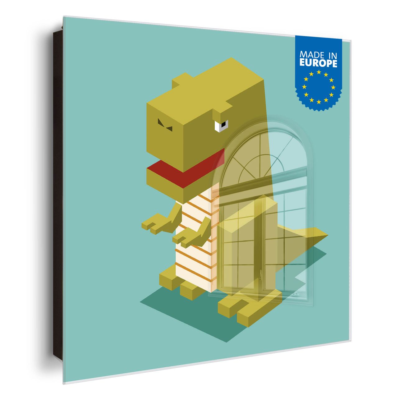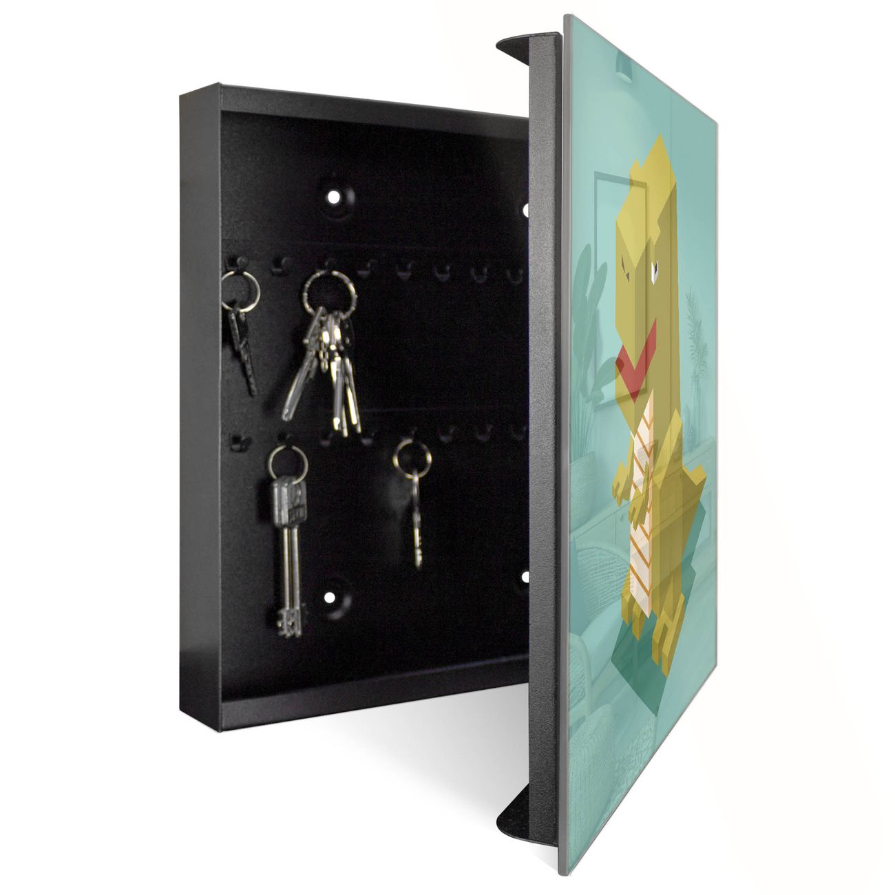 Bringe Ordnung und Eleganz in deinen Eingangsbereich mit dem banjado Schlüsselkasten Motiv Motiv T-Rex Block. Die moderne Schlüsselbox kombiniert funktionales Design mit hochwertiger Verarbeitung und wird so zu einem echten Hingucker in Flur, Büro oder Ferienwohnung. ✅ Stilvolle Schlüsselaufbewahrung mit Glasfront im Motiv Motiv T-Rex Block Der Design-Schlüsselkasten Motiv Motiv T-Rex Block bietet Platz für bis zu 50 Schlüssel, die auf 5 stabilen Reihen mit je 10 Haken übersichtlich verstaut werden. Mit seinen kompakten Maßen von 30 x 30 x 5 cm passt die Schlüsselbox perfekt auch in kleinere Räume. Der schwarz lackierte Stahlkorpus mit rechts angeschlagenem Türscharnier harmoniert mit der Glasfront und fügt sich nahtlos in jedes Wohnambiente ein. Ob als Schlüsselorganizer für Zuhause oder als praktische Lösung für Büros, Praxen und Gewerbe, der banjado Schlüsselkasten sorgt für Ordnung und Übersicht. Dank der magnetischen, mit Kreidestiften beschreibbaren Glasfront kannst du Notizen anheften oder Termine direkt auf der Oberfläche festhalten. Die Schlüsselbox Motiv Motiv T-Rex Block zur Wandmontage wird inklusive Befestigungsmaterial geliefert und ist schnell angebracht. So hast du deine Schlüssel jederzeit griffbereit und zugleich stilvoll verstaut. Mit diesem banjado Schlüsselkasten Motiv Motiv T-Rex Block kombinierst du praktische Aufbewahrung mit stilvollem Wohndesign. Ob privat oder geschäftlich, die Schlüsselbox sorgt für mehr Ordnung, Übersicht und ein wohnliches Ambiente.Vorteile im Überblick