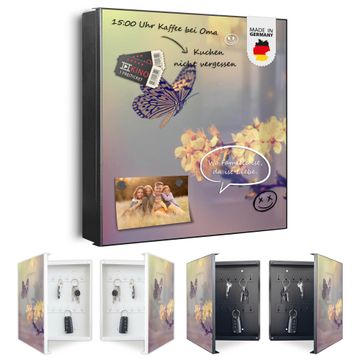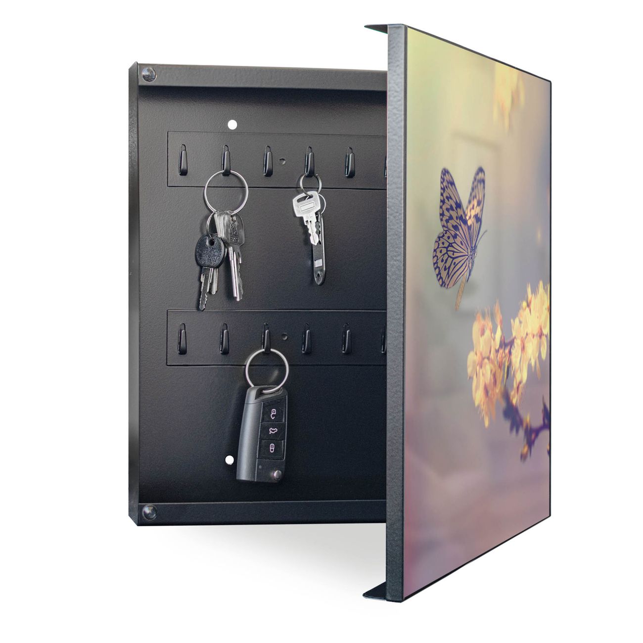 Bringe Ordnung und Eleganz in deinen Eingangsbereich mit dem banjado Schlüsselkasten Motiv Motiv Tag Im Mai. Die moderne Schlüsselbox kombiniert funktionales Design mit hochwertiger Verarbeitung und wird so zu einem echten Hingucker in Flur, Büro oder Ferienwohnung. ✅ Stilvolle Schlüsselaufbewahrung mit Motiv Motiv Tag Im Mai Der Design-Schlüsselkasten Motiv Motiv Tag Im Mai bietet Platz für bis zu 32 Schlüssel, die auf 4 stabilen Reihen mit je 8 Haken übersichtlich verstaut werden. Mit seinen kompakten Maßen von 30 x 30 x 5 cm passt die Schlüsselbox perfekt auch in kleinere Räume. Der schwarz lackierte Stahlkorpus mit rechts angeschlagenem Türscharnier harmoniert mit gedruckten Folie auf der Front und fügt sich nahtlos in jedes Wohnambiente ein. Ob als Schlüsselorganizer für Zuhause oder als praktische Lösung für Büros, Praxen und Gewerbe, der banjado Schlüsselkasten sorgt für Ordnung und Übersicht. Dank der magnetischen, mit Kreidestiften beschreibbaren Folie auf der Front kannst du Notizen anheften oder Termine direkt auf der Oberfläche festhalten. Die Schlüsselbox Motiv Motiv Tag Im Mai zur Wandmontage wird inklusive Befestigungsmaterial geliefert und ist schnell angebracht. So hast du deine Schlüssel jederzeit griffbereit und zugleich stilvoll verstaut. Mit diesem banjado Schlüsselkasten Motiv Motiv Tag Im Mai kombinierst du praktische Aufbewahrung mit stilvollem Wohndesign. Ob privat oder geschäftlich, die Schlüsselbox sorgt für mehr Ordnung, Übersicht und ein wohnliches Ambiente.Vorteile im Überblick