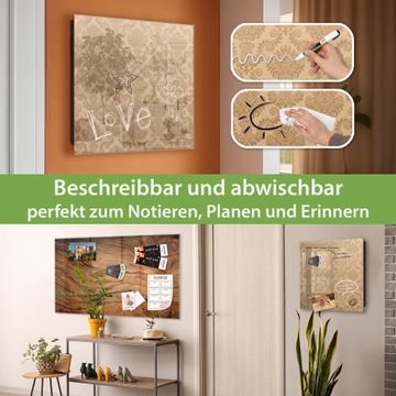 Bringe Ordnung und Eleganz in deinen Eingangsbereich mit dem banjado Schlüsselkasten Motiv Motiv Tapete Beige. Die moderne Schlüsselbox kombiniert funktionales Design mit hochwertiger Verarbeitung und wird so zu einem echten Hingucker in Flur, Büro oder Ferienwohnung. ✅ Stilvolle Schlüsselaufbewahrung mit Glasfront im Motiv Motiv Tapete Beige Der Design-Schlüsselkasten Motiv Motiv Tapete Beige bietet Platz für bis zu 50 Schlüssel, die auf 5 stabilen Reihen mit je 10 Haken übersichtlich verstaut werden. Mit seinen kompakten Maßen von 30 x 30 x 5 cm passt die Schlüsselbox perfekt auch in kleinere Räume. Der schwarz lackierte Stahlkorpus mit rechts angeschlagenem Türscharnier harmoniert mit der Glasfront und fügt sich nahtlos in jedes Wohnambiente ein. Ob als Schlüsselorganizer für Zuhause oder als praktische Lösung für Büros, Praxen und Gewerbe, der banjado Schlüsselkasten sorgt für Ordnung und Übersicht. Dank der magnetischen, mit Kreidestiften beschreibbaren Glasfront kannst du Notizen anheften oder Termine direkt auf der Oberfläche festhalten. Die Schlüsselbox Motiv Motiv Tapete Beige zur Wandmontage wird inklusive Befestigungsmaterial geliefert und ist schnell angebracht. So hast du deine Schlüssel jederzeit griffbereit und zugleich stilvoll verstaut. Mit diesem banjado Schlüsselkasten Motiv Motiv Tapete Beige kombinierst du praktische Aufbewahrung mit stilvollem Wohndesign. Ob privat oder geschäftlich, die Schlüsselbox sorgt für mehr Ordnung, Übersicht und ein wohnliches Ambiente.Vorteile im Überblick