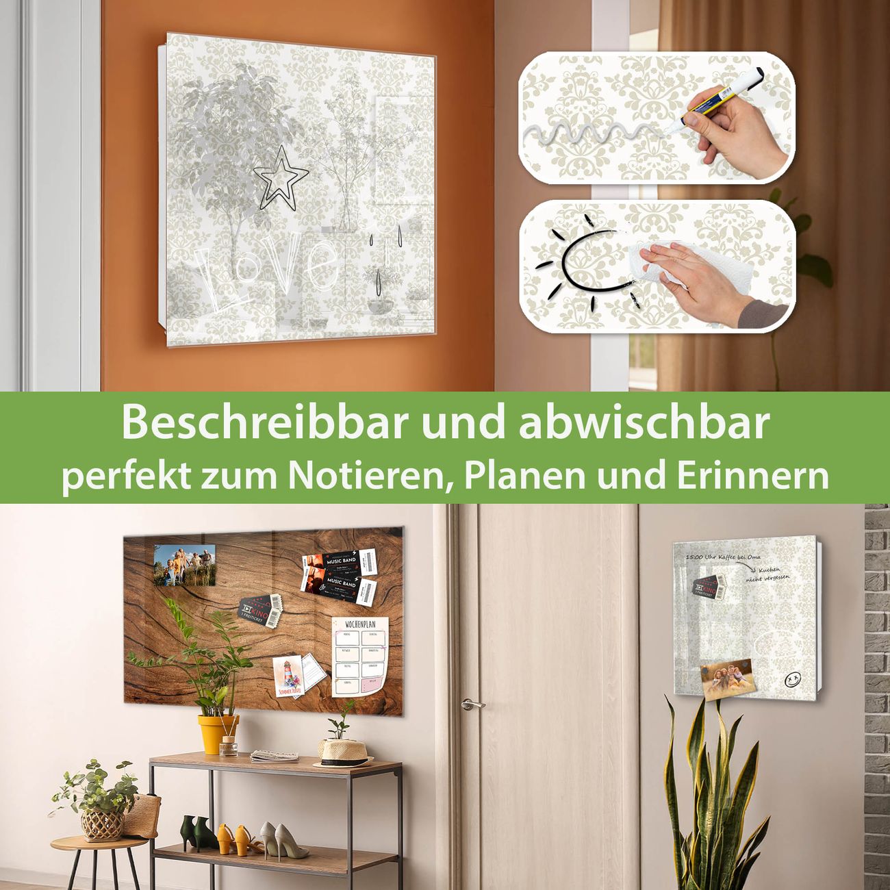 ✅ Magnetisch und mit Kreidestift beschreibbar, gehärtetes Glas, rechts angeschlagene TürOrdnung und Design in einem
