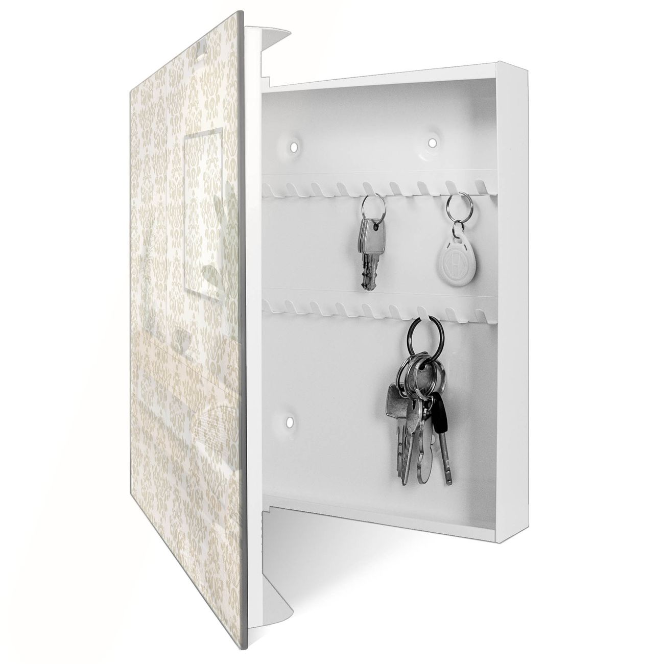 Schlüsselkasten Glas Motiv Tapete Weiß