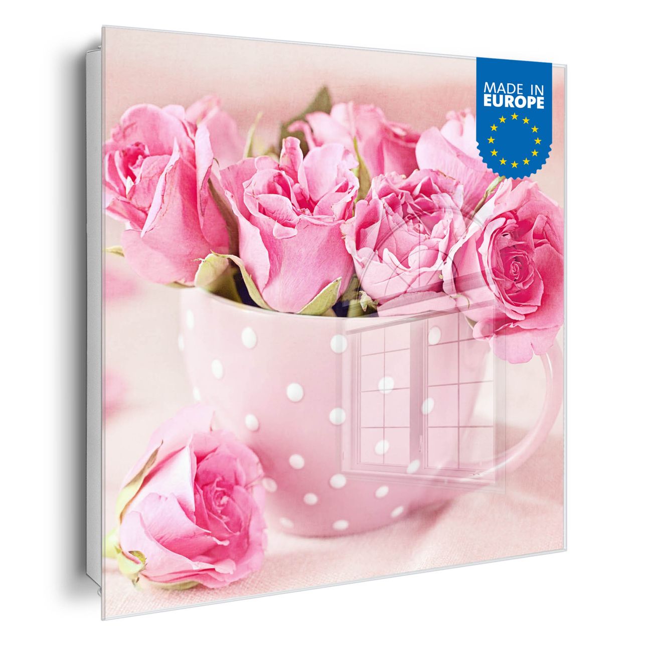 Bringe Ordnung und Eleganz in deinen Eingangsbereich mit dem banjado Schlüsselkasten Motiv Motiv Tasse Voll Rosen. Die moderne Schlüsselbox kombiniert funktionales Design mit hochwertiger Verarbeitung und wird so zu einem echten Hingucker in Flur, Büro oder Ferienwohnung. ✅ Stilvolle Schlüsselaufbewahrung mit Glasfront im Motiv Motiv Tasse Voll Rosen Der Design-Schlüsselkasten Motiv Motiv Tasse Voll Rosen bietet Platz für bis zu 50 Schlüssel, die auf 5 stabilen Reihen mit je 10 Haken übersichtlich verstaut werden. Mit seinen kompakten Maßen von 30 x 30 x 5 cm passt die Schlüsselbox perfekt auch in kleinere Räume. Der weiß lackierte Stahlkorpus mit rechts angeschlagenem Türscharnier harmoniert mit der Glasfront und fügt sich nahtlos in jedes Wohnambiente ein. Ob als Schlüsselorganizer für Zuhause oder als praktische Lösung für Büros, Praxen und Gewerbe, der banjado Schlüsselkasten sorgt für Ordnung und Übersicht. Dank der magnetischen, mit Kreidestiften beschreibbaren Glasfront kannst du Notizen anheften oder Termine direkt auf der Oberfläche festhalten. Die Schlüsselbox Motiv Motiv Tasse Voll Rosen zur Wandmontage wird inklusive Befestigungsmaterial geliefert und ist schnell angebracht. So hast du deine Schlüssel jederzeit griffbereit und zugleich stilvoll verstaut. Mit diesem banjado Schlüsselkasten Motiv Motiv Tasse Voll Rosen kombinierst du praktische Aufbewahrung mit stilvollem Wohndesign. Ob privat oder geschäftlich, die Schlüsselbox sorgt für mehr Ordnung, Übersicht und ein wohnliches Ambiente.Vorteile im Überblick