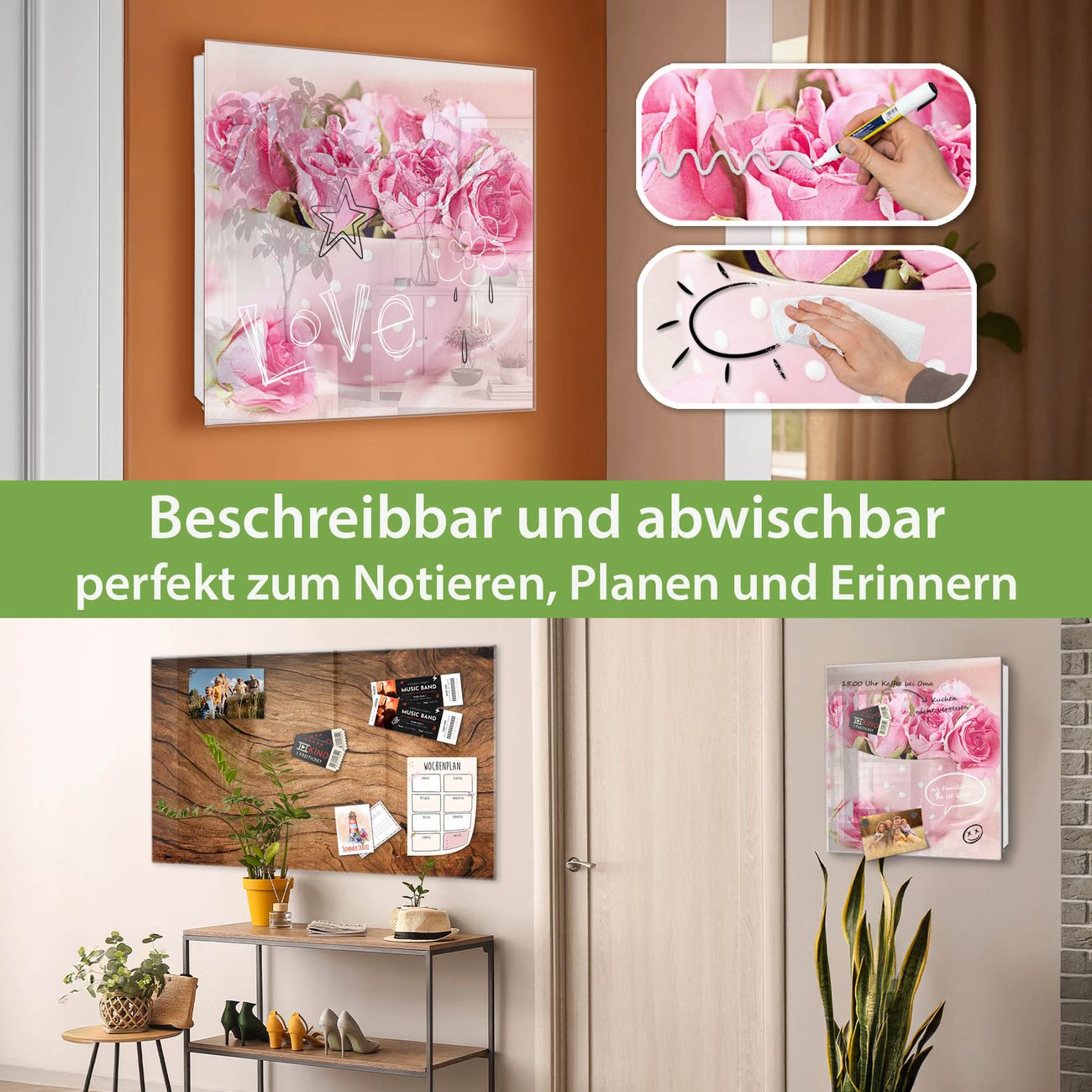 ✅ Magnetisch und mit Kreidestift beschreibbar, gehärtetes Glas, links angeschlagene TürOrdnung und Design in einem
