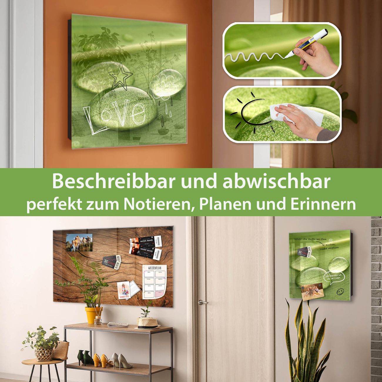 ✅ Magnetisch und mit Kreidestift beschreibbar, gehärtetes Glas, rechts angeschlagene TürOrdnung und Design in einem