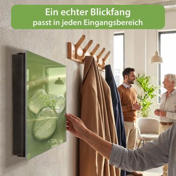 Bringe Ordnung und Eleganz in deinen Eingangsbereich mit dem banjado Schlüsselkasten Motiv Motiv Tautropfen. Die moderne Schlüsselbox kombiniert funktionales Design mit hochwertiger Verarbeitung und wird so zu einem echten Hingucker in Flur, Büro oder Ferienwohnung. ✅ Stilvolle Schlüsselaufbewahrung mit Glasfront im Motiv Motiv Tautropfen Der Design-Schlüsselkasten Motiv Motiv Tautropfen bietet Platz für bis zu 50 Schlüssel, die auf 5 stabilen Reihen mit je 10 Haken übersichtlich verstaut werden. Mit seinen kompakten Maßen von 30 x 30 x 5 cm passt die Schlüsselbox perfekt auch in kleinere Räume. Der schwarz lackierte Stahlkorpus mit rechts angeschlagenem Türscharnier harmoniert mit der Glasfront und fügt sich nahtlos in jedes Wohnambiente ein. Ob als Schlüsselorganizer für Zuhause oder als praktische Lösung für Büros, Praxen und Gewerbe, der banjado Schlüsselkasten sorgt für Ordnung und Übersicht. Dank der magnetischen, mit Kreidestiften beschreibbaren Glasfront kannst du Notizen anheften oder Termine direkt auf der Oberfläche festhalten. Die Schlüsselbox Motiv Motiv Tautropfen zur Wandmontage wird inklusive Befestigungsmaterial geliefert und ist schnell angebracht. So hast du deine Schlüssel jederzeit griffbereit und zugleich stilvoll verstaut. Mit diesem banjado Schlüsselkasten Motiv Motiv Tautropfen kombinierst du praktische Aufbewahrung mit stilvollem Wohndesign. Ob privat oder geschäftlich, die Schlüsselbox sorgt für mehr Ordnung, Übersicht und ein wohnliches Ambiente.Vorteile im Überblick