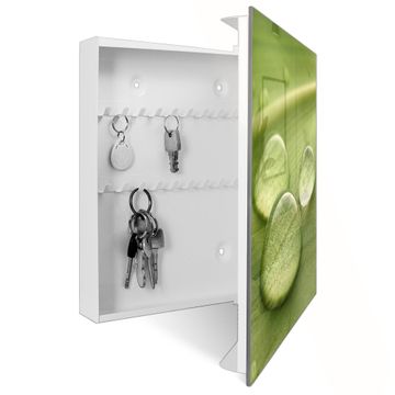 Bringe Ordnung und Eleganz in deinen Eingangsbereich mit dem banjado Schlüsselkasten Motiv Motiv Tautropfen. Die moderne Schlüsselbox kombiniert funktionales Design mit hochwertiger Verarbeitung und wird so zu einem echten Hingucker in Flur, Büro oder Ferienwohnung. ✅ Stilvolle Schlüsselaufbewahrung mit Glasfront im Motiv Motiv Tautropfen Der Design-Schlüsselkasten Motiv Motiv Tautropfen bietet Platz für bis zu 50 Schlüssel, die auf 5 stabilen Reihen mit je 10 Haken übersichtlich verstaut werden. Mit seinen kompakten Maßen von 30 x 30 x 5 cm passt die Schlüsselbox perfekt auch in kleinere Räume. Der weiß lackierte Stahlkorpus mit rechts angeschlagenem Türscharnier harmoniert mit der Glasfront und fügt sich nahtlos in jedes Wohnambiente ein. Ob als Schlüsselorganizer für Zuhause oder als praktische Lösung für Büros, Praxen und Gewerbe, der banjado Schlüsselkasten sorgt für Ordnung und Übersicht. Dank der magnetischen, mit Kreidestiften beschreibbaren Glasfront kannst du Notizen anheften oder Termine direkt auf der Oberfläche festhalten. Die Schlüsselbox Motiv Motiv Tautropfen zur Wandmontage wird inklusive Befestigungsmaterial geliefert und ist schnell angebracht. So hast du deine Schlüssel jederzeit griffbereit und zugleich stilvoll verstaut. Mit diesem banjado Schlüsselkasten Motiv Motiv Tautropfen kombinierst du praktische Aufbewahrung mit stilvollem Wohndesign. Ob privat oder geschäftlich, die Schlüsselbox sorgt für mehr Ordnung, Übersicht und ein wohnliches Ambiente.Vorteile im Überblick