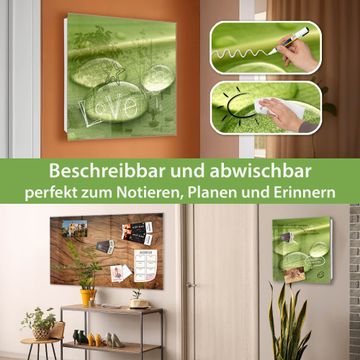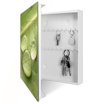 Bringe Ordnung und Eleganz in deinen Eingangsbereich mit dem banjado Schlüsselkasten Motiv Motiv Tautropfen. Die moderne Schlüsselbox kombiniert funktionales Design mit hochwertiger Verarbeitung und wird so zu einem echten Hingucker in Flur, Büro oder Ferienwohnung. ✅ Stilvolle Schlüsselaufbewahrung mit Glasfront im Motiv Motiv Tautropfen Der Design-Schlüsselkasten Motiv Motiv Tautropfen bietet Platz für bis zu 50 Schlüssel, die auf 5 stabilen Reihen mit je 10 Haken übersichtlich verstaut werden. Mit seinen kompakten Maßen von 30 x 30 x 5 cm passt die Schlüsselbox perfekt auch in kleinere Räume. Der weiß lackierte Stahlkorpus mit rechts angeschlagenem Türscharnier harmoniert mit der Glasfront und fügt sich nahtlos in jedes Wohnambiente ein. Ob als Schlüsselorganizer für Zuhause oder als praktische Lösung für Büros, Praxen und Gewerbe, der banjado Schlüsselkasten sorgt für Ordnung und Übersicht. Dank der magnetischen, mit Kreidestiften beschreibbaren Glasfront kannst du Notizen anheften oder Termine direkt auf der Oberfläche festhalten. Die Schlüsselbox Motiv Motiv Tautropfen zur Wandmontage wird inklusive Befestigungsmaterial geliefert und ist schnell angebracht. So hast du deine Schlüssel jederzeit griffbereit und zugleich stilvoll verstaut. Mit diesem banjado Schlüsselkasten Motiv Motiv Tautropfen kombinierst du praktische Aufbewahrung mit stilvollem Wohndesign. Ob privat oder geschäftlich, die Schlüsselbox sorgt für mehr Ordnung, Übersicht und ein wohnliches Ambiente.Vorteile im Überblick