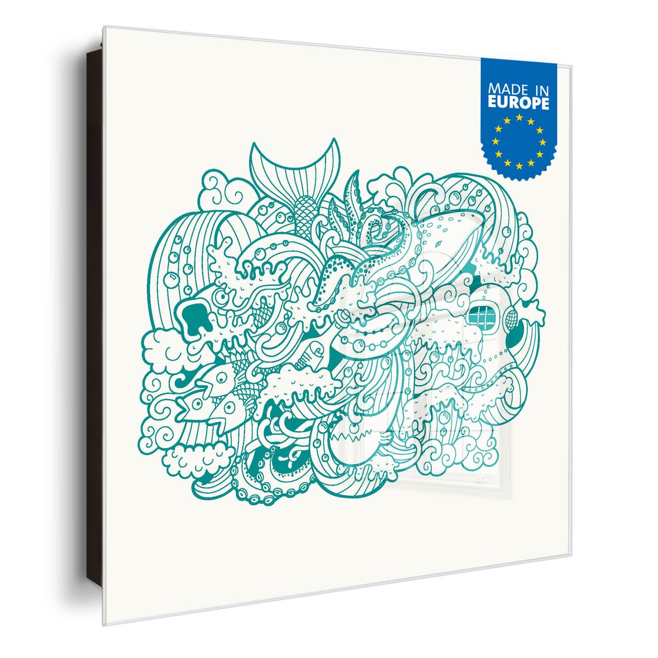 Bringe Ordnung und Eleganz in deinen Eingangsbereich mit dem banjado Schlüsselkasten Motiv Motiv Tiefsee. Die moderne Schlüsselbox kombiniert funktionales Design mit hochwertiger Verarbeitung und wird so zu einem echten Hingucker in Flur, Büro oder Ferienwohnung. ✅ Stilvolle Schlüsselaufbewahrung mit Glasfront im Motiv Motiv Tiefsee Der Design-Schlüsselkasten Motiv Motiv Tiefsee bietet Platz für bis zu 50 Schlüssel, die auf 5 stabilen Reihen mit je 10 Haken übersichtlich verstaut werden. Mit seinen kompakten Maßen von 30 x 30 x 5 cm passt die Schlüsselbox perfekt auch in kleinere Räume. Der schwarz lackierte Stahlkorpus mit rechts angeschlagenem Türscharnier harmoniert mit der Glasfront und fügt sich nahtlos in jedes Wohnambiente ein. Ob als Schlüsselorganizer für Zuhause oder als praktische Lösung für Büros, Praxen und Gewerbe, der banjado Schlüsselkasten sorgt für Ordnung und Übersicht. Dank der magnetischen, mit Kreidestiften beschreibbaren Glasfront kannst du Notizen anheften oder Termine direkt auf der Oberfläche festhalten. Die Schlüsselbox Motiv Motiv Tiefsee zur Wandmontage wird inklusive Befestigungsmaterial geliefert und ist schnell angebracht. So hast du deine Schlüssel jederzeit griffbereit und zugleich stilvoll verstaut. Mit diesem banjado Schlüsselkasten Motiv Motiv Tiefsee kombinierst du praktische Aufbewahrung mit stilvollem Wohndesign. Ob privat oder geschäftlich, die Schlüsselbox sorgt für mehr Ordnung, Übersicht und ein wohnliches Ambiente.Vorteile im Überblick