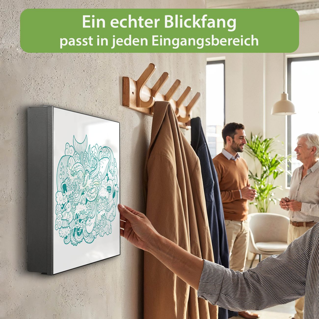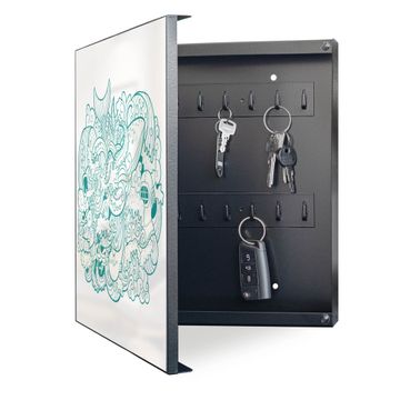 Bringe Ordnung und Eleganz in deinen Eingangsbereich mit dem banjado Schlüsselkasten Motiv Motiv Tiefsee. Die moderne Schlüsselbox kombiniert funktionales Design mit hochwertiger Verarbeitung und wird so zu einem echten Hingucker in Flur, Büro oder Ferienwohnung. ✅ Stilvolle Schlüsselaufbewahrung mit Motiv Motiv Tiefsee Der Design-Schlüsselkasten Motiv Motiv Tiefsee bietet Platz für bis zu 32 Schlüssel, die auf 4 stabilen Reihen mit je 8 Haken übersichtlich verstaut werden. Mit seinen kompakten Maßen von 30 x 30 x 5 cm passt die Schlüsselbox perfekt auch in kleinere Räume. Der schwarz lackierte Stahlkorpus mit links angeschlagenem Türscharnier harmoniert mit gedruckten Folie auf der Front und fügt sich nahtlos in jedes Wohnambiente ein. Ob als Schlüsselorganizer für Zuhause oder als praktische Lösung für Büros, Praxen und Gewerbe, der banjado Schlüsselkasten sorgt für Ordnung und Übersicht. Dank der magnetischen, mit Kreidestiften beschreibbaren Folie auf der Front kannst du Notizen anheften oder Termine direkt auf der Oberfläche festhalten. Die Schlüsselbox Motiv Motiv Tiefsee zur Wandmontage wird inklusive Befestigungsmaterial geliefert und ist schnell angebracht. So hast du deine Schlüssel jederzeit griffbereit und zugleich stilvoll verstaut. Mit diesem banjado Schlüsselkasten Motiv Motiv Tiefsee kombinierst du praktische Aufbewahrung mit stilvollem Wohndesign. Ob privat oder geschäftlich, die Schlüsselbox sorgt für mehr Ordnung, Übersicht und ein wohnliches Ambiente.Vorteile im Überblick