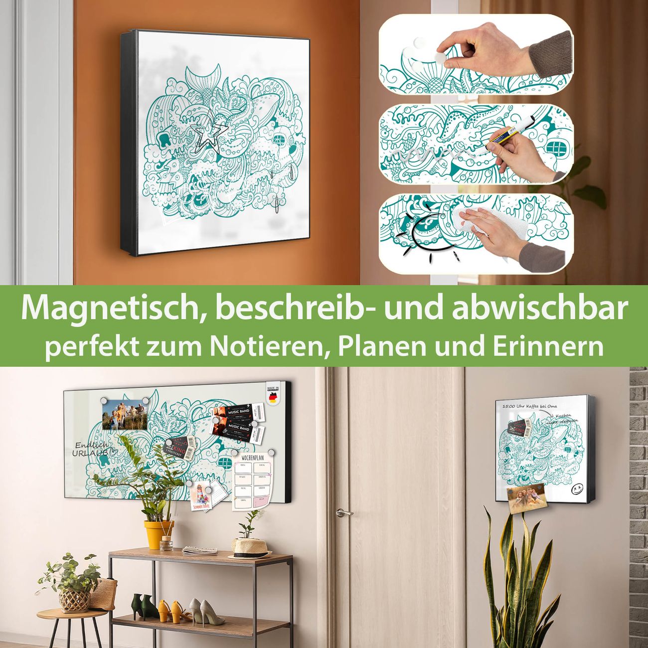 ✅ Magnetisch und mit Kreidestift beschreibbar, links angeschlagene TürOrdnung und Design in einem