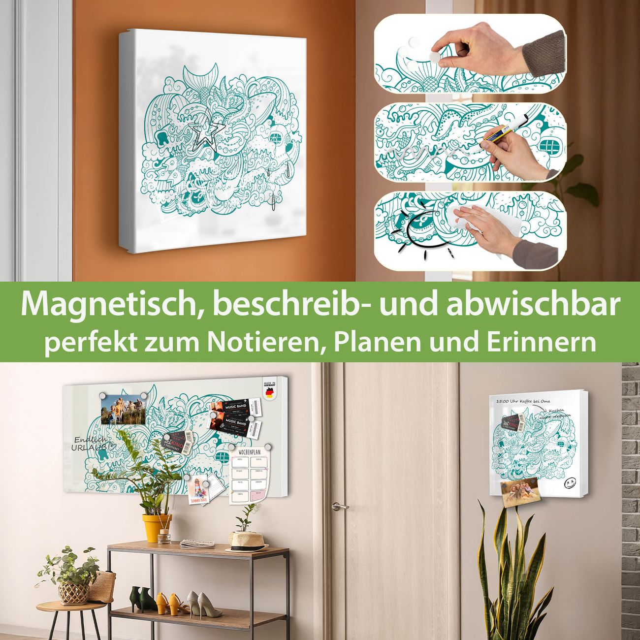 ✅ Magnetisch und mit Kreidestift beschreibbar, rechts angeschlagene TürOrdnung und Design in einem
