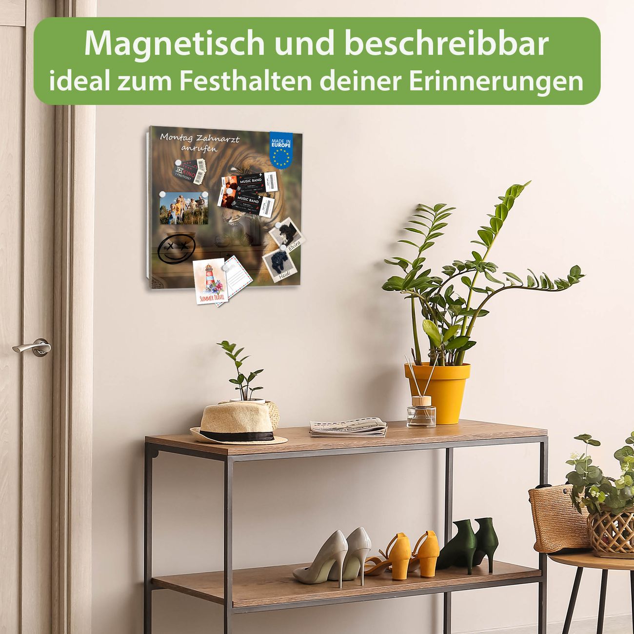 ✅ Magnetisch und mit Kreidestift beschreibbar, gehärtetes Glas, links angeschlagene TürOrdnung und Design in einem
