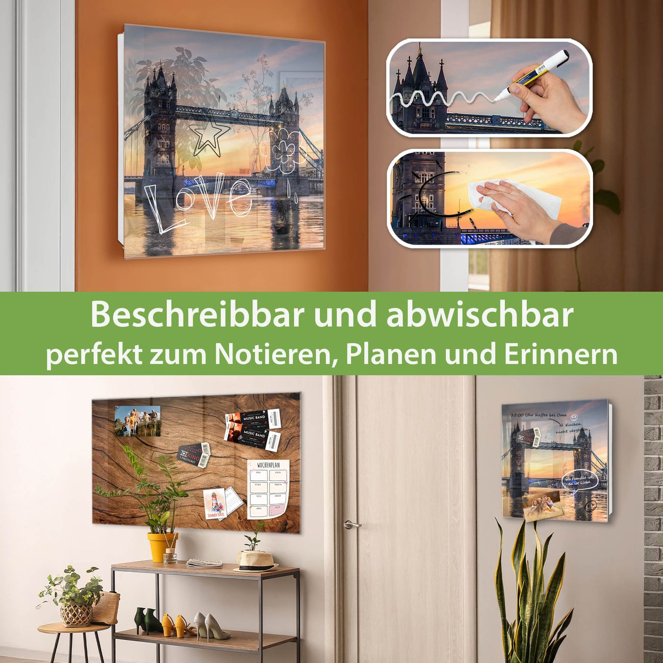 ✅ Magnetisch und mit Kreidestift beschreibbar, gehärtetes Glas, rechts angeschlagene TürOrdnung und Design in einem
