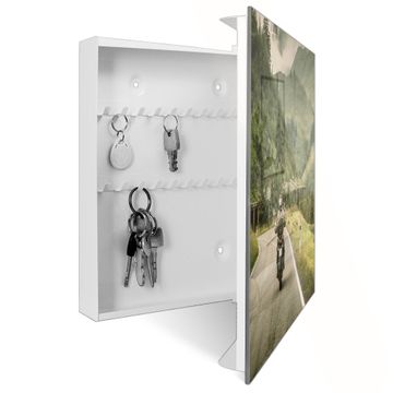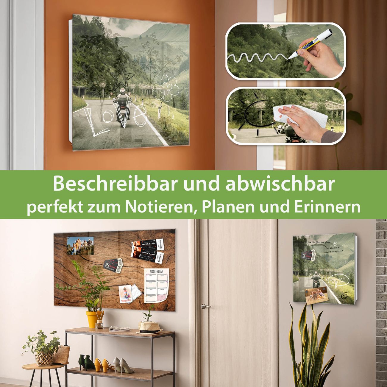 Bringe Ordnung und Eleganz in deinen Eingangsbereich mit dem banjado Schlüsselkasten Motiv Motiv Transalp. Die moderne Schlüsselbox kombiniert funktionales Design mit hochwertiger Verarbeitung und wird so zu einem echten Hingucker in Flur, Büro oder Ferienwohnung. ✅ Stilvolle Schlüsselaufbewahrung mit Glasfront im Motiv Motiv Transalp Der Design-Schlüsselkasten Motiv Motiv Transalp bietet Platz für bis zu 50 Schlüssel, die auf 5 stabilen Reihen mit je 10 Haken übersichtlich verstaut werden. Mit seinen kompakten Maßen von 30 x 30 x 5 cm passt die Schlüsselbox perfekt auch in kleinere Räume. Der weiß lackierte Stahlkorpus mit rechts angeschlagenem Türscharnier harmoniert mit der Glasfront und fügt sich nahtlos in jedes Wohnambiente ein. Ob als Schlüsselorganizer für Zuhause oder als praktische Lösung für Büros, Praxen und Gewerbe, der banjado Schlüsselkasten sorgt für Ordnung und Übersicht. Dank der magnetischen, mit Kreidestiften beschreibbaren Glasfront kannst du Notizen anheften oder Termine direkt auf der Oberfläche festhalten. Die Schlüsselbox Motiv Motiv Transalp zur Wandmontage wird inklusive Befestigungsmaterial geliefert und ist schnell angebracht. So hast du deine Schlüssel jederzeit griffbereit und zugleich stilvoll verstaut. Mit diesem banjado Schlüsselkasten Motiv Motiv Transalp kombinierst du praktische Aufbewahrung mit stilvollem Wohndesign. Ob privat oder geschäftlich, die Schlüsselbox sorgt für mehr Ordnung, Übersicht und ein wohnliches Ambiente.Vorteile im Überblick