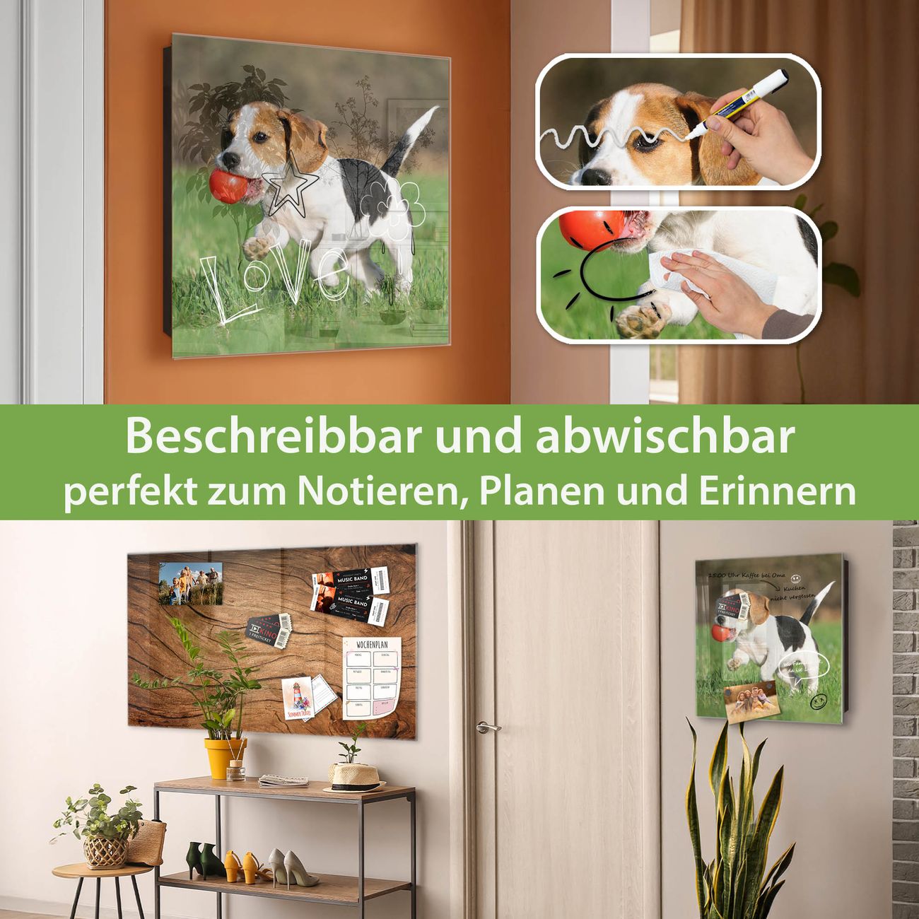 ✅ Magnetisch und mit Kreidestift beschreibbar, gehärtetes Glas, links angeschlagene TürOrdnung und Design in einem