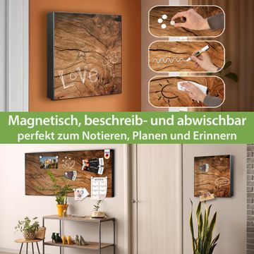 Bringe Ordnung und Eleganz in deinen Eingangsbereich mit dem banjado Schlüsselkasten Motiv Motiv Trockenes Holz. Die moderne Schlüsselbox kombiniert funktionales Design mit hochwertiger Verarbeitung und wird so zu einem echten Hingucker in Flur, Büro oder Ferienwohnung. ✅ Stilvolle Schlüsselaufbewahrung mit Motiv Motiv Trockenes Holz Der Design-Schlüsselkasten Motiv Motiv Trockenes Holz bietet Platz für bis zu 32 Schlüssel, die auf 4 stabilen Reihen mit je 8 Haken übersichtlich verstaut werden. Mit seinen kompakten Maßen von 30 x 30 x 5 cm passt die Schlüsselbox perfekt auch in kleinere Räume. Der schwarz lackierte Stahlkorpus mit rechts angeschlagenem Türscharnier harmoniert mit gedruckten Folie auf der Front und fügt sich nahtlos in jedes Wohnambiente ein. Ob als Schlüsselorganizer für Zuhause oder als praktische Lösung für Büros, Praxen und Gewerbe, der banjado Schlüsselkasten sorgt für Ordnung und Übersicht. Dank der magnetischen, mit Kreidestiften beschreibbaren Folie auf der Front kannst du Notizen anheften oder Termine direkt auf der Oberfläche festhalten. Die Schlüsselbox Motiv Motiv Trockenes Holz zur Wandmontage wird inklusive Befestigungsmaterial geliefert und ist schnell angebracht. So hast du deine Schlüssel jederzeit griffbereit und zugleich stilvoll verstaut. Mit diesem banjado Schlüsselkasten Motiv Motiv Trockenes Holz kombinierst du praktische Aufbewahrung mit stilvollem Wohndesign. Ob privat oder geschäftlich, die Schlüsselbox sorgt für mehr Ordnung, Übersicht und ein wohnliches Ambiente.Vorteile im Überblick
