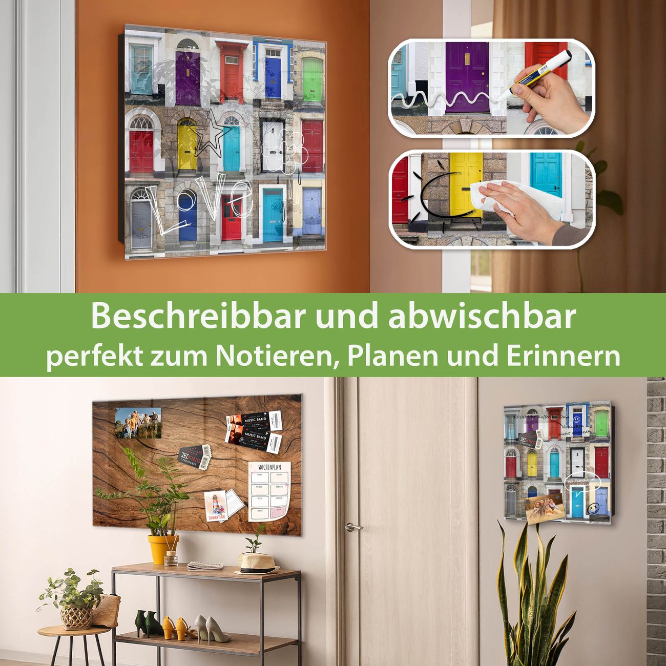 ✅ Magnetisch und mit Kreidestift beschreibbar, gehärtetes Glas, links angeschlagene TürOrdnung und Design in einem