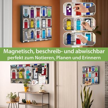 Bringe Ordnung und Eleganz in deinen Eingangsbereich mit dem banjado Schlüsselkasten Motiv Motiv Türen. Die moderne Schlüsselbox kombiniert funktionales Design mit hochwertiger Verarbeitung und wird so zu einem echten Hingucker in Flur, Büro oder Ferienwohnung. ✅ Stilvolle Schlüsselaufbewahrung mit Motiv Motiv Türen Der Design-Schlüsselkasten Motiv Motiv Türen bietet Platz für bis zu 32 Schlüssel, die auf 4 stabilen Reihen mit je 8 Haken übersichtlich verstaut werden. Mit seinen kompakten Maßen von 30 x 30 x 5 cm passt die Schlüsselbox perfekt auch in kleinere Räume. Der schwarz lackierte Stahlkorpus mit links angeschlagenem Türscharnier harmoniert mit gedruckten Folie auf der Front und fügt sich nahtlos in jedes Wohnambiente ein. Ob als Schlüsselorganizer für Zuhause oder als praktische Lösung für Büros, Praxen und Gewerbe, der banjado Schlüsselkasten sorgt für Ordnung und Übersicht. Dank der magnetischen, mit Kreidestiften beschreibbaren Folie auf der Front kannst du Notizen anheften oder Termine direkt auf der Oberfläche festhalten. Die Schlüsselbox Motiv Motiv Türen zur Wandmontage wird inklusive Befestigungsmaterial geliefert und ist schnell angebracht. So hast du deine Schlüssel jederzeit griffbereit und zugleich stilvoll verstaut. Mit diesem banjado Schlüsselkasten Motiv Motiv Türen kombinierst du praktische Aufbewahrung mit stilvollem Wohndesign. Ob privat oder geschäftlich, die Schlüsselbox sorgt für mehr Ordnung, Übersicht und ein wohnliches Ambiente.Vorteile im Überblick