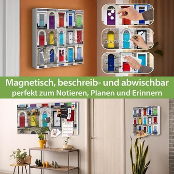 Bringe Ordnung und Eleganz in deinen Eingangsbereich mit dem banjado Schlüsselkasten Motiv Motiv Türen. Die moderne Schlüsselbox kombiniert funktionales Design mit hochwertiger Verarbeitung und wird so zu einem echten Hingucker in Flur, Büro oder Ferienwohnung. ✅ Stilvolle Schlüsselaufbewahrung mit Motiv Motiv Türen Der Design-Schlüsselkasten Motiv Motiv Türen bietet Platz für bis zu 32 Schlüssel, die auf 4 stabilen Reihen mit je 8 Haken übersichtlich verstaut werden. Mit seinen kompakten Maßen von 30 x 30 x 5 cm passt die Schlüsselbox perfekt auch in kleinere Räume. Der weiß lackierte Stahlkorpus mit rechts angeschlagenem Türscharnier harmoniert mit gedruckten Folie auf der Front und fügt sich nahtlos in jedes Wohnambiente ein. Ob als Schlüsselorganizer für Zuhause oder als praktische Lösung für Büros, Praxen und Gewerbe, der banjado Schlüsselkasten sorgt für Ordnung und Übersicht. Dank der magnetischen, mit Kreidestiften beschreibbaren Folie auf der Front kannst du Notizen anheften oder Termine direkt auf der Oberfläche festhalten. Die Schlüsselbox Motiv Motiv Türen zur Wandmontage wird inklusive Befestigungsmaterial geliefert und ist schnell angebracht. So hast du deine Schlüssel jederzeit griffbereit und zugleich stilvoll verstaut. Mit diesem banjado Schlüsselkasten Motiv Motiv Türen kombinierst du praktische Aufbewahrung mit stilvollem Wohndesign. Ob privat oder geschäftlich, die Schlüsselbox sorgt für mehr Ordnung, Übersicht und ein wohnliches Ambiente.Vorteile im Überblick