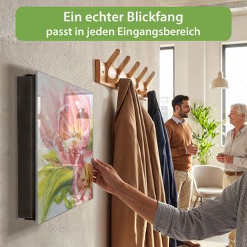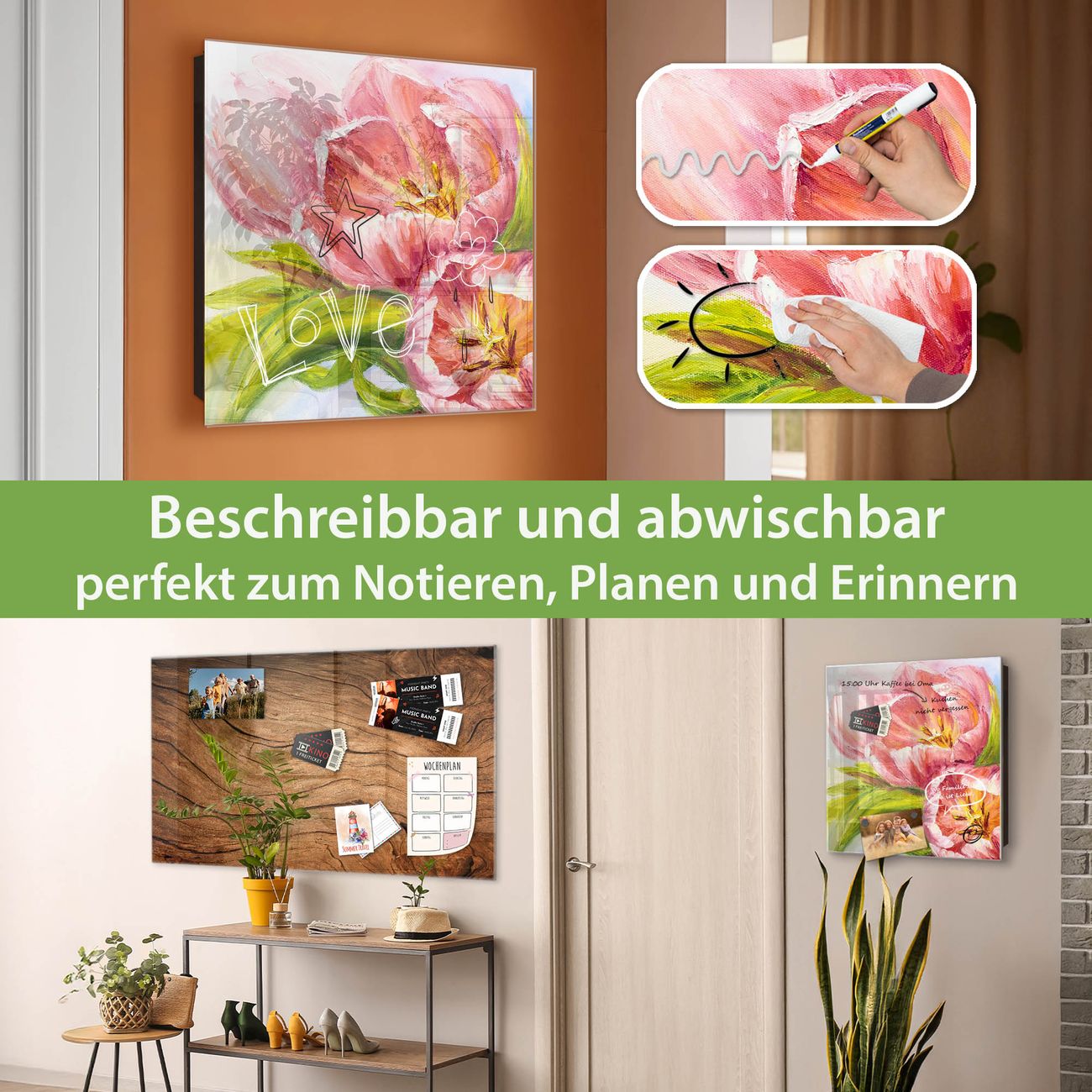 Bringe Ordnung und Eleganz in deinen Eingangsbereich mit dem banjado Schlüsselkasten Motiv Motiv Tulpen Detail. Die moderne Schlüsselbox kombiniert funktionales Design mit hochwertiger Verarbeitung und wird so zu einem echten Hingucker in Flur, Büro oder Ferienwohnung. ✅ Stilvolle Schlüsselaufbewahrung mit Glasfront im Motiv Motiv Tulpen Detail Der Design-Schlüsselkasten Motiv Motiv Tulpen Detail bietet Platz für bis zu 50 Schlüssel, die auf 5 stabilen Reihen mit je 10 Haken übersichtlich verstaut werden. Mit seinen kompakten Maßen von 30 x 30 x 5 cm passt die Schlüsselbox perfekt auch in kleinere Räume. Der schwarz lackierte Stahlkorpus mit rechts angeschlagenem Türscharnier harmoniert mit der Glasfront und fügt sich nahtlos in jedes Wohnambiente ein. Ob als Schlüsselorganizer für Zuhause oder als praktische Lösung für Büros, Praxen und Gewerbe, der banjado Schlüsselkasten sorgt für Ordnung und Übersicht. Dank der magnetischen, mit Kreidestiften beschreibbaren Glasfront kannst du Notizen anheften oder Termine direkt auf der Oberfläche festhalten. Die Schlüsselbox Motiv Motiv Tulpen Detail zur Wandmontage wird inklusive Befestigungsmaterial geliefert und ist schnell angebracht. So hast du deine Schlüssel jederzeit griffbereit und zugleich stilvoll verstaut. Mit diesem banjado Schlüsselkasten Motiv Motiv Tulpen Detail kombinierst du praktische Aufbewahrung mit stilvollem Wohndesign. Ob privat oder geschäftlich, die Schlüsselbox sorgt für mehr Ordnung, Übersicht und ein wohnliches Ambiente.Vorteile im Überblick