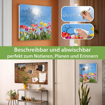 Bringe Ordnung und Eleganz in deinen Eingangsbereich mit dem banjado Schlüsselkasten Motiv Motiv Tulpenmeer. Die moderne Schlüsselbox kombiniert funktionales Design mit hochwertiger Verarbeitung und wird so zu einem echten Hingucker in Flur, Büro oder Ferienwohnung. ✅ Stilvolle Schlüsselaufbewahrung mit Glasfront im Motiv Motiv Tulpenmeer Der Design-Schlüsselkasten Motiv Motiv Tulpenmeer bietet Platz für bis zu 50 Schlüssel, die auf 5 stabilen Reihen mit je 10 Haken übersichtlich verstaut werden. Mit seinen kompakten Maßen von 30 x 30 x 5 cm passt die Schlüsselbox perfekt auch in kleinere Räume. Der weiß lackierte Stahlkorpus mit rechts angeschlagenem Türscharnier harmoniert mit der Glasfront und fügt sich nahtlos in jedes Wohnambiente ein. Ob als Schlüsselorganizer für Zuhause oder als praktische Lösung für Büros, Praxen und Gewerbe, der banjado Schlüsselkasten sorgt für Ordnung und Übersicht. Dank der magnetischen, mit Kreidestiften beschreibbaren Glasfront kannst du Notizen anheften oder Termine direkt auf der Oberfläche festhalten. Die Schlüsselbox Motiv Motiv Tulpenmeer zur Wandmontage wird inklusive Befestigungsmaterial geliefert und ist schnell angebracht. So hast du deine Schlüssel jederzeit griffbereit und zugleich stilvoll verstaut. Mit diesem banjado Schlüsselkasten Motiv Motiv Tulpenmeer kombinierst du praktische Aufbewahrung mit stilvollem Wohndesign. Ob privat oder geschäftlich, die Schlüsselbox sorgt für mehr Ordnung, Übersicht und ein wohnliches Ambiente.Vorteile im Überblick
