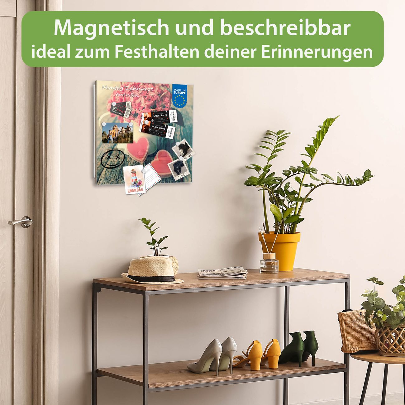 ✅ Magnetisch und mit Kreidestift beschreibbar, gehärtetes Glas, rechts angeschlagene TürOrdnung und Design in einem