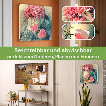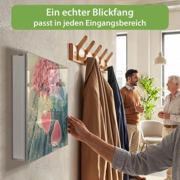 Bringe Ordnung und Eleganz in deinen Eingangsbereich mit dem banjado Schlüsselkasten Motiv Motiv Valentin. Die moderne Schlüsselbox kombiniert funktionales Design mit hochwertiger Verarbeitung und wird so zu einem echten Hingucker in Flur, Büro oder Ferienwohnung. ✅ Stilvolle Schlüsselaufbewahrung mit Glasfront im Motiv Motiv Valentin Der Design-Schlüsselkasten Motiv Motiv Valentin bietet Platz für bis zu 50 Schlüssel, die auf 5 stabilen Reihen mit je 10 Haken übersichtlich verstaut werden. Mit seinen kompakten Maßen von 30 x 30 x 5 cm passt die Schlüsselbox perfekt auch in kleinere Räume. Der weiß lackierte Stahlkorpus mit rechts angeschlagenem Türscharnier harmoniert mit der Glasfront und fügt sich nahtlos in jedes Wohnambiente ein. Ob als Schlüsselorganizer für Zuhause oder als praktische Lösung für Büros, Praxen und Gewerbe, der banjado Schlüsselkasten sorgt für Ordnung und Übersicht. Dank der magnetischen, mit Kreidestiften beschreibbaren Glasfront kannst du Notizen anheften oder Termine direkt auf der Oberfläche festhalten. Die Schlüsselbox Motiv Motiv Valentin zur Wandmontage wird inklusive Befestigungsmaterial geliefert und ist schnell angebracht. So hast du deine Schlüssel jederzeit griffbereit und zugleich stilvoll verstaut. Mit diesem banjado Schlüsselkasten Motiv Motiv Valentin kombinierst du praktische Aufbewahrung mit stilvollem Wohndesign. Ob privat oder geschäftlich, die Schlüsselbox sorgt für mehr Ordnung, Übersicht und ein wohnliches Ambiente.Vorteile im Überblick