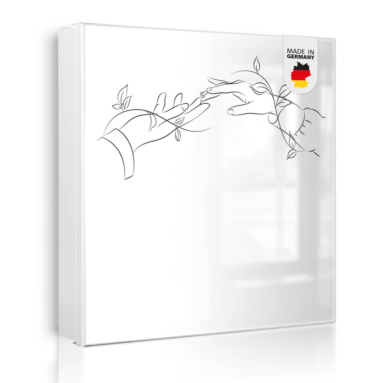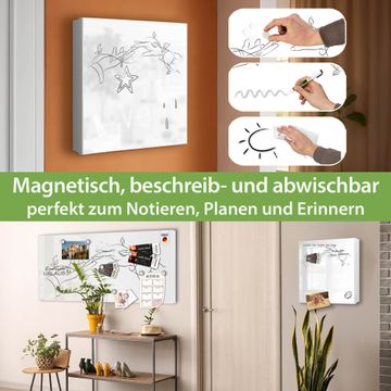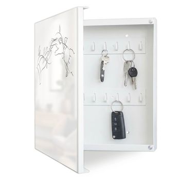 Bringe Ordnung und Eleganz in deinen Eingangsbereich mit dem banjado Schlüsselkasten Motiv Motiv Verbindende Hände Lineart. Die moderne Schlüsselbox kombiniert funktionales Design mit hochwertiger Verarbeitung und wird so zu einem echten Hingucker in Flur, Büro oder Ferienwohnung. ✅ Stilvolle Schlüsselaufbewahrung mit Motiv Motiv Verbindende Hände Lineart Der Design-Schlüsselkasten Motiv Motiv Verbindende Hände Lineart bietet Platz für bis zu 32 Schlüssel, die auf 4 stabilen Reihen mit je 8 Haken übersichtlich verstaut werden. Mit seinen kompakten Maßen von 30 x 30 x 5 cm passt die Schlüsselbox perfekt auch in kleinere Räume. Der weiß lackierte Stahlkorpus mit links angeschlagenem Türscharnier harmoniert mit gedruckten Folie auf der Front und fügt sich nahtlos in jedes Wohnambiente ein. Ob als Schlüsselorganizer für Zuhause oder als praktische Lösung für Büros, Praxen und Gewerbe, der banjado Schlüsselkasten sorgt für Ordnung und Übersicht. Dank der magnetischen, mit Kreidestiften beschreibbaren Folie auf der Front kannst du Notizen anheften oder Termine direkt auf der Oberfläche festhalten. Die Schlüsselbox Motiv Motiv Verbindende Hände Lineart zur Wandmontage wird inklusive Befestigungsmaterial geliefert und ist schnell angebracht. So hast du deine Schlüssel jederzeit griffbereit und zugleich stilvoll verstaut. Mit diesem banjado Schlüsselkasten Motiv Motiv Verbindende Hände Lineart kombinierst du praktische Aufbewahrung mit stilvollem Wohndesign. Ob privat oder geschäftlich, die Schlüsselbox sorgt für mehr Ordnung, Übersicht und ein wohnliches Ambiente.Vorteile im Überblick