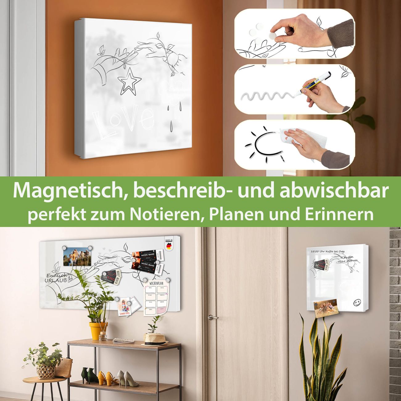 ✅ Magnetisch und mit Kreidestift beschreibbar, links angeschlagene TürOrdnung und Design in einem
