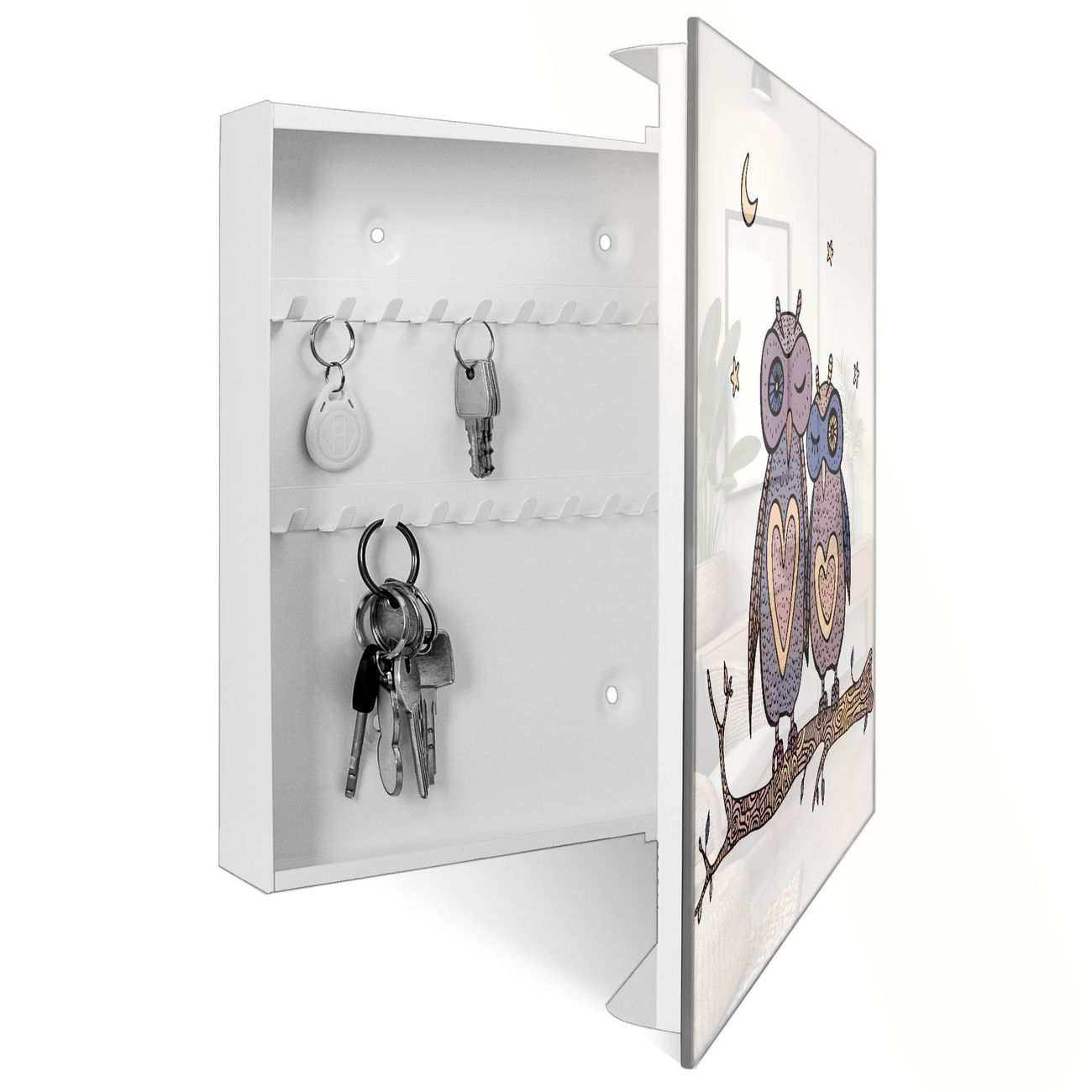 Schlüsselkasten Glas Motiv Verliebte Eulen