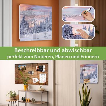 Bringe Ordnung und Eleganz in deinen Eingangsbereich mit dem banjado Schlüsselkasten Motiv Motiv Verschneite Berge. Die moderne Schlüsselbox kombiniert funktionales Design mit hochwertiger Verarbeitung und wird so zu einem echten Hingucker in Flur, Büro oder Ferienwohnung. ✅ Stilvolle Schlüsselaufbewahrung mit Glasfront im Motiv Motiv Verschneite Berge Der Design-Schlüsselkasten Motiv Motiv Verschneite Berge bietet Platz für bis zu 50 Schlüssel, die auf 5 stabilen Reihen mit je 10 Haken übersichtlich verstaut werden. Mit seinen kompakten Maßen von 30 x 30 x 5 cm passt die Schlüsselbox perfekt auch in kleinere Räume. Der weiß lackierte Stahlkorpus mit rechts angeschlagenem Türscharnier harmoniert mit der Glasfront und fügt sich nahtlos in jedes Wohnambiente ein. Ob als Schlüsselorganizer für Zuhause oder als praktische Lösung für Büros, Praxen und Gewerbe, der banjado Schlüsselkasten sorgt für Ordnung und Übersicht. Dank der magnetischen, mit Kreidestiften beschreibbaren Glasfront kannst du Notizen anheften oder Termine direkt auf der Oberfläche festhalten. Die Schlüsselbox Motiv Motiv Verschneite Berge zur Wandmontage wird inklusive Befestigungsmaterial geliefert und ist schnell angebracht. So hast du deine Schlüssel jederzeit griffbereit und zugleich stilvoll verstaut. Mit diesem banjado Schlüsselkasten Motiv Motiv Verschneite Berge kombinierst du praktische Aufbewahrung mit stilvollem Wohndesign. Ob privat oder geschäftlich, die Schlüsselbox sorgt für mehr Ordnung, Übersicht und ein wohnliches Ambiente.Vorteile im Überblick