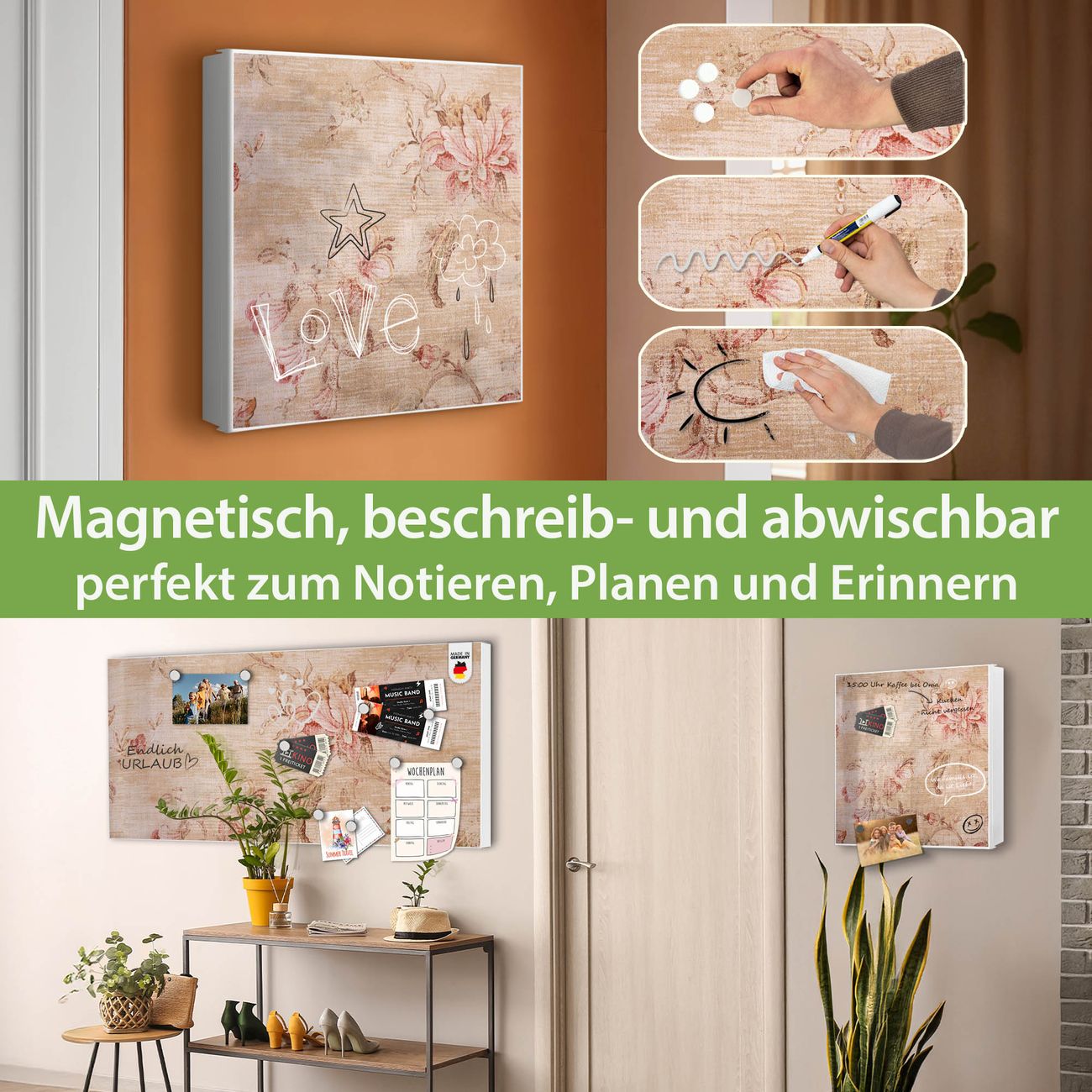 ✅ Magnetisch und mit Kreidestift beschreibbar, rechts angeschlagene TürOrdnung und Design in einem