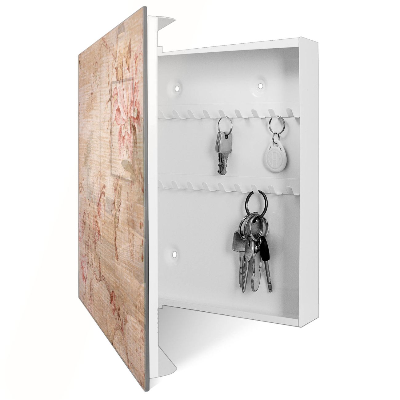 Bringe Ordnung und Eleganz in deinen Eingangsbereich mit dem banjado Schlüsselkasten Motiv Motiv Verschwindend. Die moderne Schlüsselbox kombiniert funktionales Design mit hochwertiger Verarbeitung und wird so zu einem echten Hingucker in Flur, Büro oder Ferienwohnung. ✅ Stilvolle Schlüsselaufbewahrung mit Glasfront im Motiv Motiv Verschwindend Der Design-Schlüsselkasten Motiv Motiv Verschwindend bietet Platz für bis zu 50 Schlüssel, die auf 5 stabilen Reihen mit je 10 Haken übersichtlich verstaut werden. Mit seinen kompakten Maßen von 30 x 30 x 5 cm passt die Schlüsselbox perfekt auch in kleinere Räume. Der weiß lackierte Stahlkorpus mit rechts angeschlagenem Türscharnier harmoniert mit der Glasfront und fügt sich nahtlos in jedes Wohnambiente ein. Ob als Schlüsselorganizer für Zuhause oder als praktische Lösung für Büros, Praxen und Gewerbe, der banjado Schlüsselkasten sorgt für Ordnung und Übersicht. Dank der magnetischen, mit Kreidestiften beschreibbaren Glasfront kannst du Notizen anheften oder Termine direkt auf der Oberfläche festhalten. Die Schlüsselbox Motiv Motiv Verschwindend zur Wandmontage wird inklusive Befestigungsmaterial geliefert und ist schnell angebracht. So hast du deine Schlüssel jederzeit griffbereit und zugleich stilvoll verstaut. Mit diesem banjado Schlüsselkasten Motiv Motiv Verschwindend kombinierst du praktische Aufbewahrung mit stilvollem Wohndesign. Ob privat oder geschäftlich, die Schlüsselbox sorgt für mehr Ordnung, Übersicht und ein wohnliches Ambiente.Vorteile im Überblick