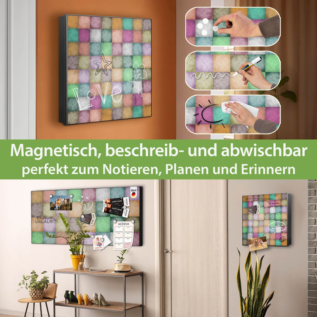 ✅ Magnetisch und mit Kreidestift beschreibbar, rechts angeschlagene TürOrdnung und Design in einem
