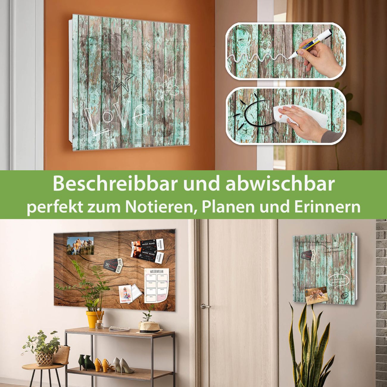 ✅ Magnetisch und mit Kreidestift beschreibbar, gehärtetes Glas, links angeschlagene TürOrdnung und Design in einem