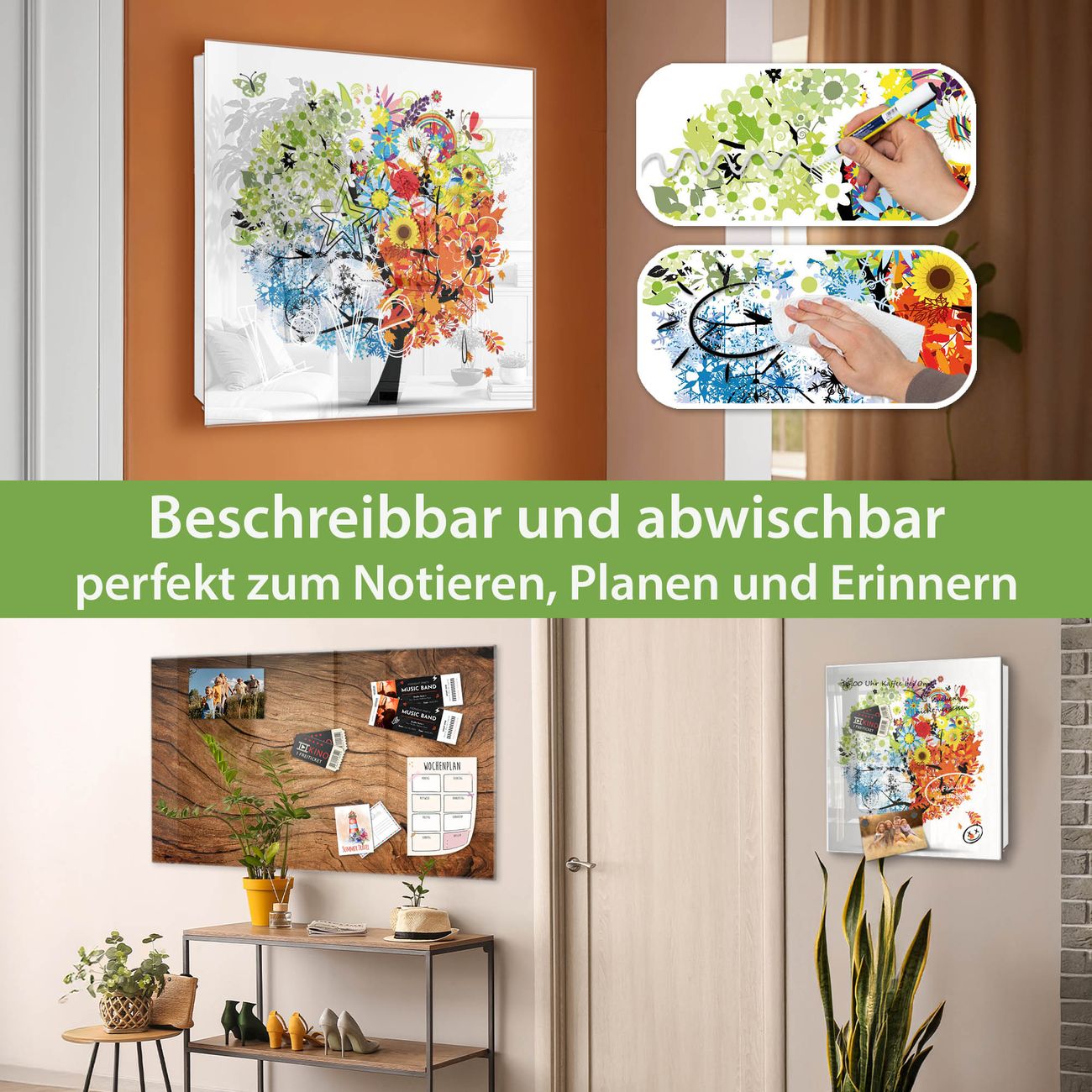 ✅ Magnetisch und mit Kreidestift beschreibbar, gehärtetes Glas, rechts angeschlagene TürOrdnung und Design in einem
