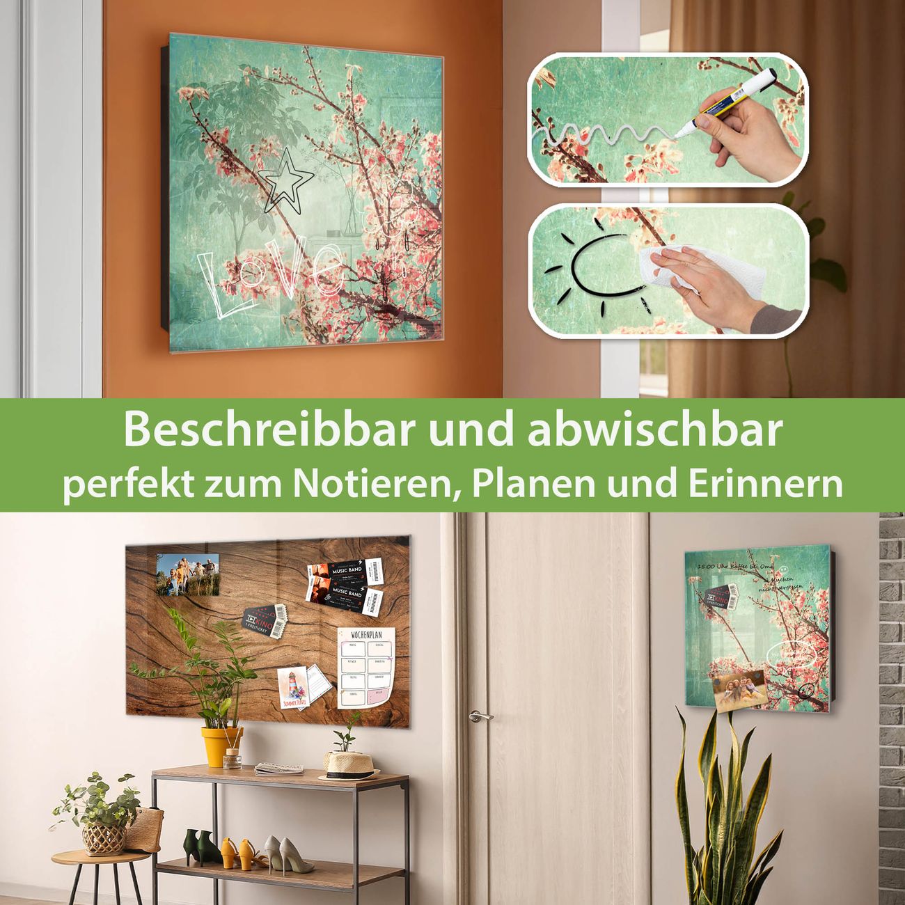 Bringe Ordnung und Eleganz in deinen Eingangsbereich mit dem banjado Schlüsselkasten Motiv Motiv Vintage Herbst. Die moderne Schlüsselbox kombiniert funktionales Design mit hochwertiger Verarbeitung und wird so zu einem echten Hingucker in Flur, Büro oder Ferienwohnung. ✅ Stilvolle Schlüsselaufbewahrung mit Glasfront im Motiv Motiv Vintage Herbst Der Design-Schlüsselkasten Motiv Motiv Vintage Herbst bietet Platz für bis zu 50 Schlüssel, die auf 5 stabilen Reihen mit je 10 Haken übersichtlich verstaut werden. Mit seinen kompakten Maßen von 30 x 30 x 5 cm passt die Schlüsselbox perfekt auch in kleinere Räume. Der schwarz lackierte Stahlkorpus mit rechts angeschlagenem Türscharnier harmoniert mit der Glasfront und fügt sich nahtlos in jedes Wohnambiente ein. Ob als Schlüsselorganizer für Zuhause oder als praktische Lösung für Büros, Praxen und Gewerbe, der banjado Schlüsselkasten sorgt für Ordnung und Übersicht. Dank der magnetischen, mit Kreidestiften beschreibbaren Glasfront kannst du Notizen anheften oder Termine direkt auf der Oberfläche festhalten. Die Schlüsselbox Motiv Motiv Vintage Herbst zur Wandmontage wird inklusive Befestigungsmaterial geliefert und ist schnell angebracht. So hast du deine Schlüssel jederzeit griffbereit und zugleich stilvoll verstaut. Mit diesem banjado Schlüsselkasten Motiv Motiv Vintage Herbst kombinierst du praktische Aufbewahrung mit stilvollem Wohndesign. Ob privat oder geschäftlich, die Schlüsselbox sorgt für mehr Ordnung, Übersicht und ein wohnliches Ambiente.Vorteile im Überblick