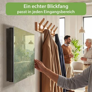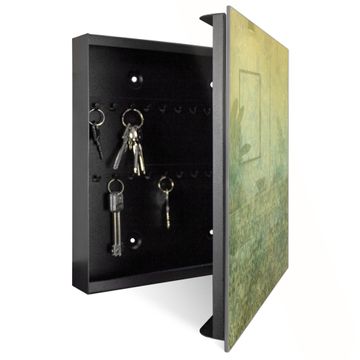 Bringe Ordnung und Eleganz in deinen Eingangsbereich mit dem banjado Schlüsselkasten Motiv Motiv Vintage Messing. Die moderne Schlüsselbox kombiniert funktionales Design mit hochwertiger Verarbeitung und wird so zu einem echten Hingucker in Flur, Büro oder Ferienwohnung. ✅ Stilvolle Schlüsselaufbewahrung mit Glasfront im Motiv Motiv Vintage Messing Der Design-Schlüsselkasten Motiv Motiv Vintage Messing bietet Platz für bis zu 50 Schlüssel, die auf 5 stabilen Reihen mit je 10 Haken übersichtlich verstaut werden. Mit seinen kompakten Maßen von 30 x 30 x 5 cm passt die Schlüsselbox perfekt auch in kleinere Räume. Der schwarz lackierte Stahlkorpus mit rechts angeschlagenem Türscharnier harmoniert mit der Glasfront und fügt sich nahtlos in jedes Wohnambiente ein. Ob als Schlüsselorganizer für Zuhause oder als praktische Lösung für Büros, Praxen und Gewerbe, der banjado Schlüsselkasten sorgt für Ordnung und Übersicht. Dank der magnetischen, mit Kreidestiften beschreibbaren Glasfront kannst du Notizen anheften oder Termine direkt auf der Oberfläche festhalten. Die Schlüsselbox Motiv Motiv Vintage Messing zur Wandmontage wird inklusive Befestigungsmaterial geliefert und ist schnell angebracht. So hast du deine Schlüssel jederzeit griffbereit und zugleich stilvoll verstaut. Mit diesem banjado Schlüsselkasten Motiv Motiv Vintage Messing kombinierst du praktische Aufbewahrung mit stilvollem Wohndesign. Ob privat oder geschäftlich, die Schlüsselbox sorgt für mehr Ordnung, Übersicht und ein wohnliches Ambiente.Vorteile im Überblick