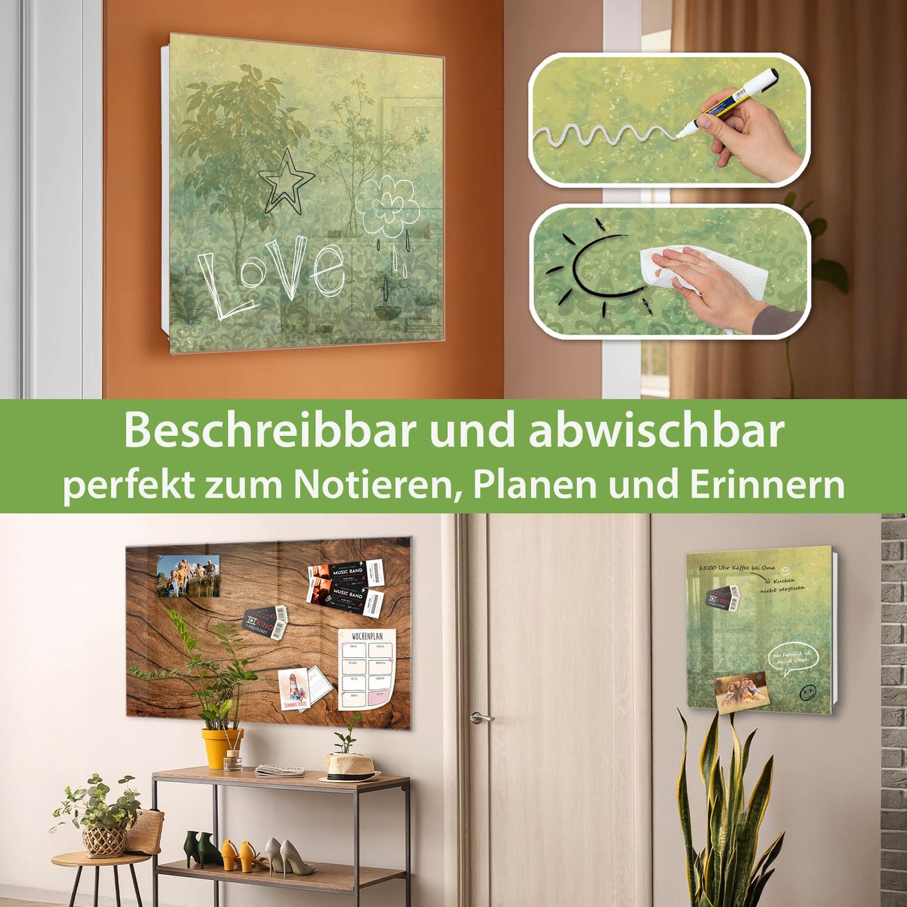 ✅ Magnetisch und mit Kreidestift beschreibbar, gehärtetes Glas, rechts angeschlagene TürOrdnung und Design in einem