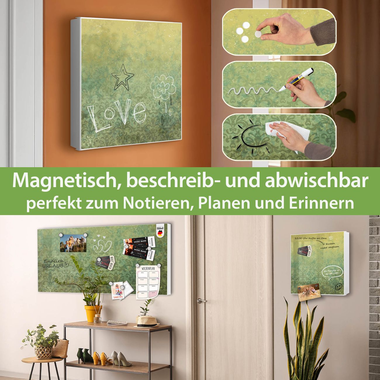 ✅ Magnetisch und mit Kreidestift beschreibbar, links angeschlagene TürOrdnung und Design in einem