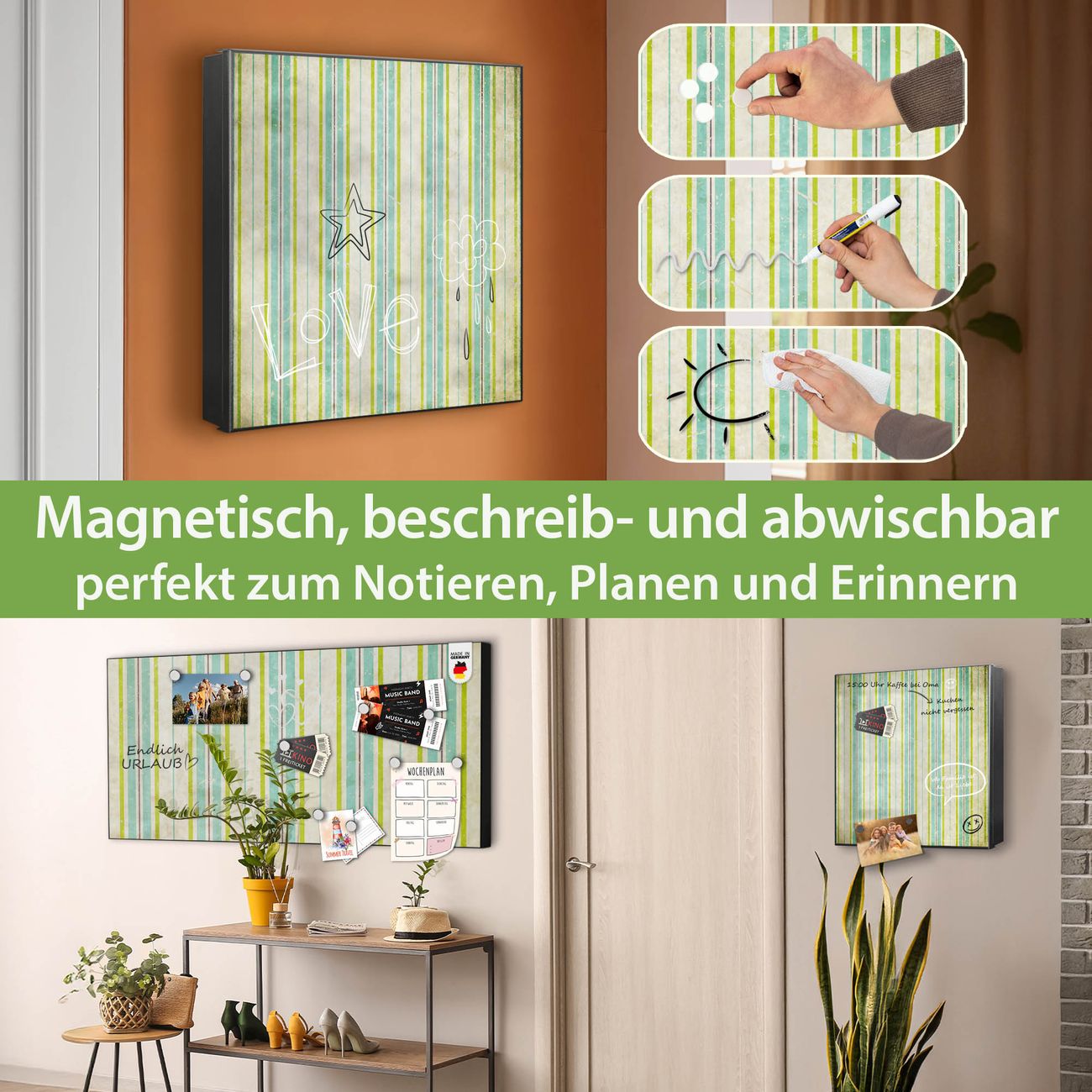 ✅ Magnetisch und mit Kreidestift beschreibbar, links angeschlagene TürOrdnung und Design in einem