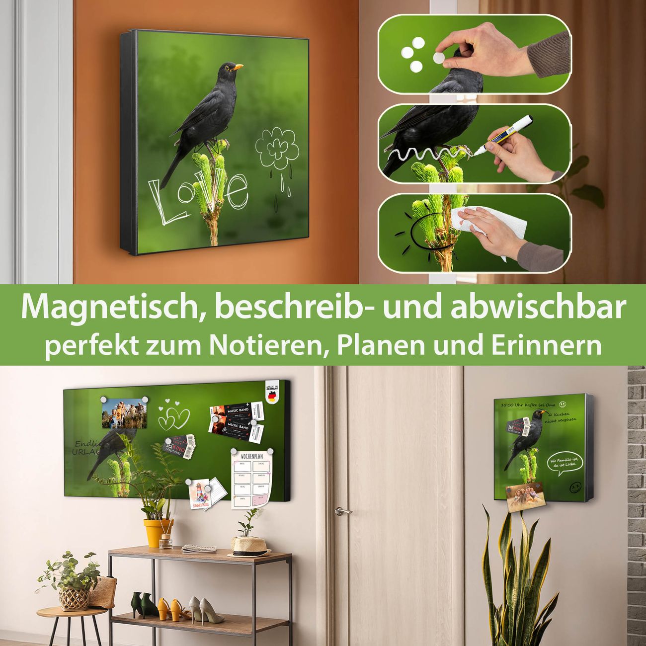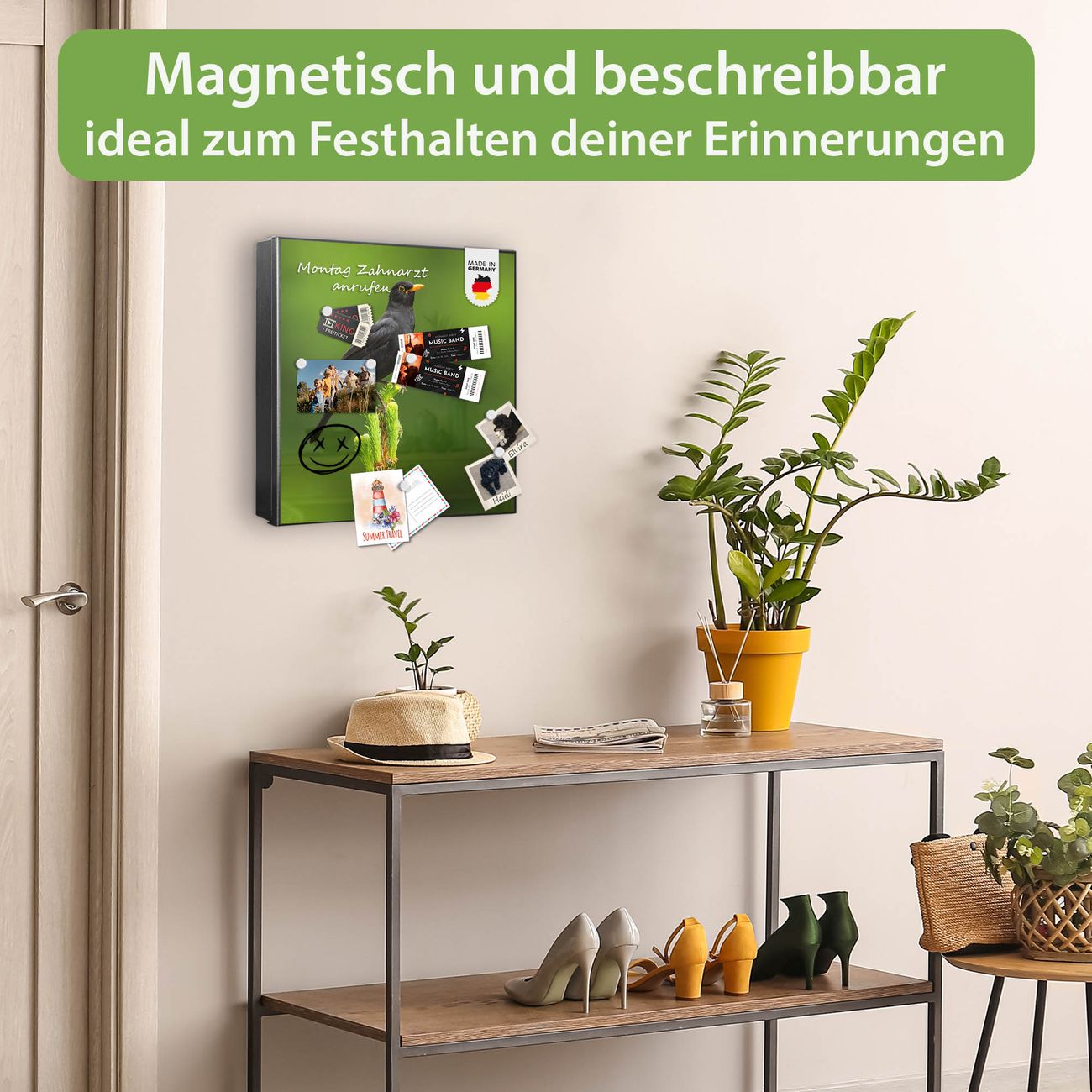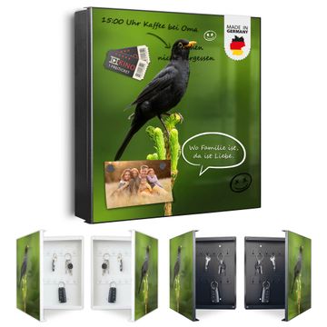 Bringe Ordnung und Eleganz in deinen Eingangsbereich mit dem banjado Schlüsselkasten Motiv Motiv Vogel auf Tannenzweig. Die moderne Schlüsselbox kombiniert funktionales Design mit hochwertiger Verarbeitung und wird so zu einem echten Hingucker in Flur, Büro oder Ferienwohnung. ✅ Stilvolle Schlüsselaufbewahrung mit Motiv Motiv Vogel auf Tannenzweig Der Design-Schlüsselkasten Motiv Motiv Vogel auf Tannenzweig bietet Platz für bis zu 32 Schlüssel, die auf 4 stabilen Reihen mit je 8 Haken übersichtlich verstaut werden. Mit seinen kompakten Maßen von 30 x 30 x 5 cm passt die Schlüsselbox perfekt auch in kleinere Räume. Der schwarz lackierte Stahlkorpus mit links angeschlagenem Türscharnier harmoniert mit gedruckten Folie auf der Front und fügt sich nahtlos in jedes Wohnambiente ein. Ob als Schlüsselorganizer für Zuhause oder als praktische Lösung für Büros, Praxen und Gewerbe, der banjado Schlüsselkasten sorgt für Ordnung und Übersicht. Dank der magnetischen, mit Kreidestiften beschreibbaren Folie auf der Front kannst du Notizen anheften oder Termine direkt auf der Oberfläche festhalten. Die Schlüsselbox Motiv Motiv Vogel auf Tannenzweig zur Wandmontage wird inklusive Befestigungsmaterial geliefert und ist schnell angebracht. So hast du deine Schlüssel jederzeit griffbereit und zugleich stilvoll verstaut. Mit diesem banjado Schlüsselkasten Motiv Motiv Vogel auf Tannenzweig kombinierst du praktische Aufbewahrung mit stilvollem Wohndesign. Ob privat oder geschäftlich, die Schlüsselbox sorgt für mehr Ordnung, Übersicht und ein wohnliches Ambiente.Vorteile im Überblick