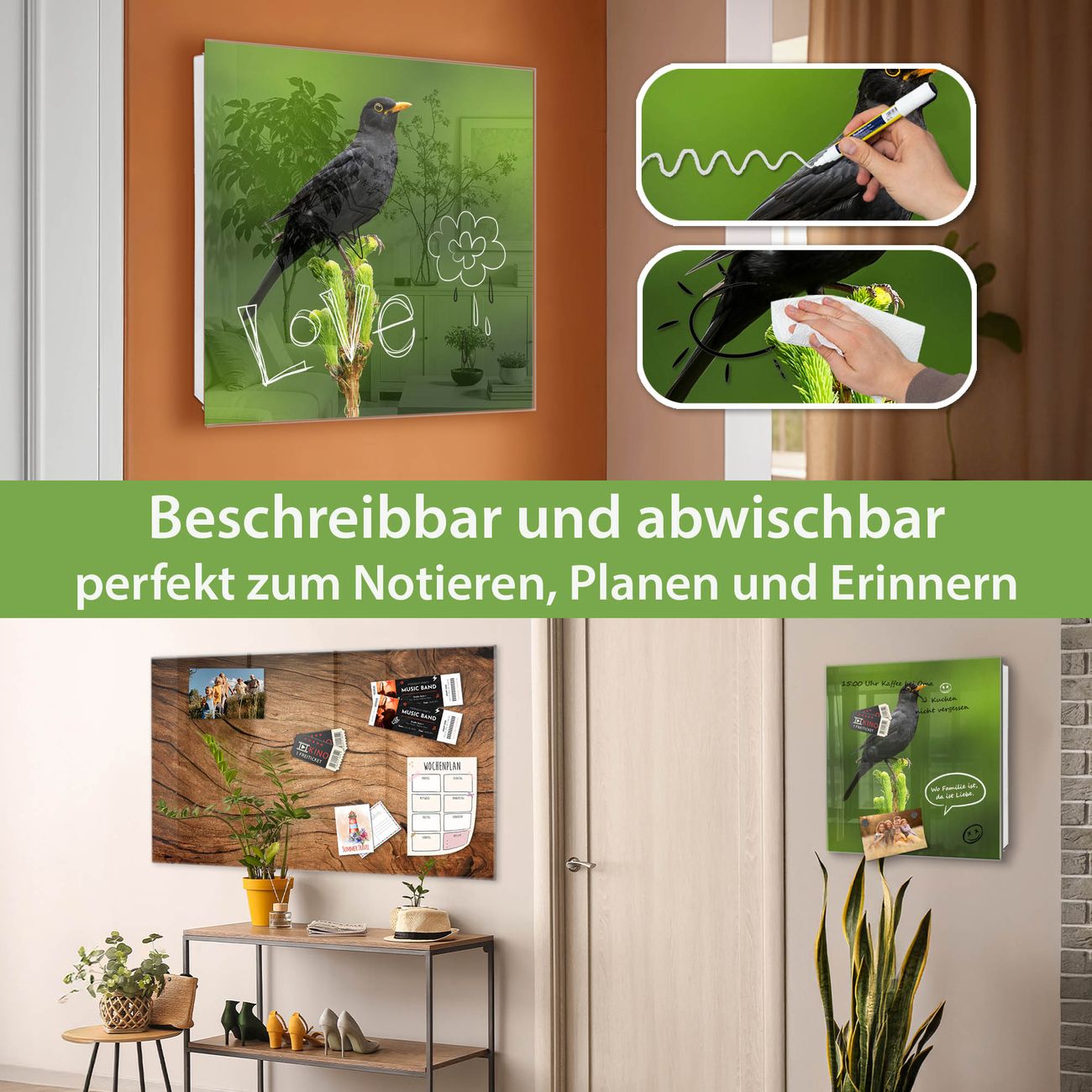 ✅ Magnetisch und mit Kreidestift beschreibbar, gehärtetes Glas, rechts angeschlagene TürOrdnung und Design in einem