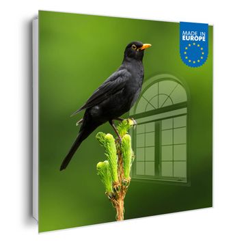 Schlüsselkasten Glas Motiv Vogel auf Tannenzweig