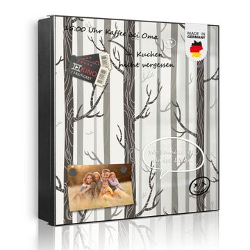 Bringe Ordnung und Eleganz in deinen Eingangsbereich mit dem banjado Schlüsselkasten Motiv Motiv Wald. Die moderne Schlüsselbox kombiniert funktionales Design mit hochwertiger Verarbeitung und wird so zu einem echten Hingucker in Flur, Büro oder Ferienwohnung. ✅ Stilvolle Schlüsselaufbewahrung mit Motiv Motiv Wald Der Design-Schlüsselkasten Motiv Motiv Wald bietet Platz für bis zu 32 Schlüssel, die auf 4 stabilen Reihen mit je 8 Haken übersichtlich verstaut werden. Mit seinen kompakten Maßen von 30 x 30 x 5 cm passt die Schlüsselbox perfekt auch in kleinere Räume. Der schwarz lackierte Stahlkorpus mit rechts angeschlagenem Türscharnier harmoniert mit gedruckten Folie auf der Front und fügt sich nahtlos in jedes Wohnambiente ein. Ob als Schlüsselorganizer für Zuhause oder als praktische Lösung für Büros, Praxen und Gewerbe, der banjado Schlüsselkasten sorgt für Ordnung und Übersicht. Dank der magnetischen, mit Kreidestiften beschreibbaren Folie auf der Front kannst du Notizen anheften oder Termine direkt auf der Oberfläche festhalten. Die Schlüsselbox Motiv Motiv Wald zur Wandmontage wird inklusive Befestigungsmaterial geliefert und ist schnell angebracht. So hast du deine Schlüssel jederzeit griffbereit und zugleich stilvoll verstaut. Mit diesem banjado Schlüsselkasten Motiv Motiv Wald kombinierst du praktische Aufbewahrung mit stilvollem Wohndesign. Ob privat oder geschäftlich, die Schlüsselbox sorgt für mehr Ordnung, Übersicht und ein wohnliches Ambiente.Vorteile im Überblick