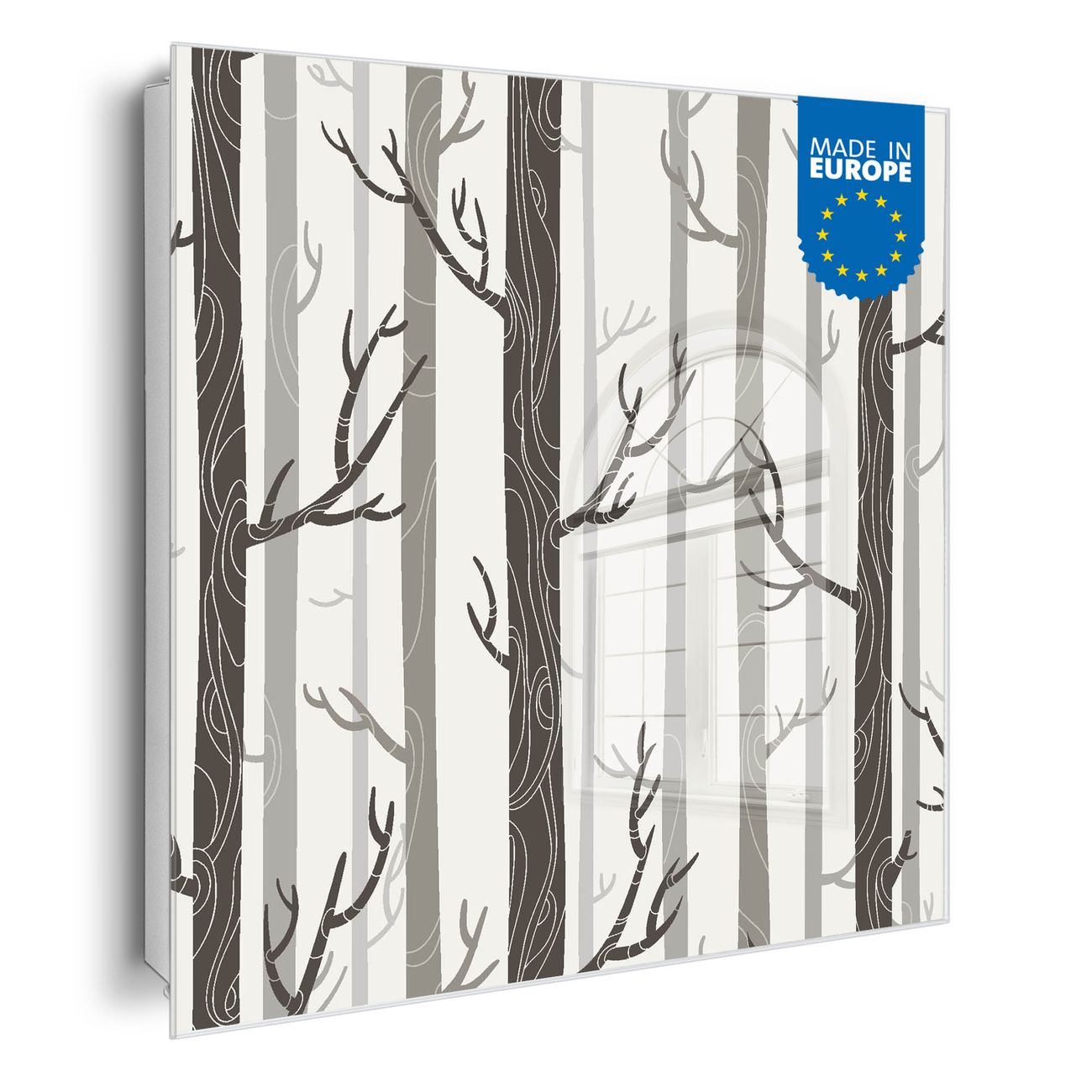 Bringe Ordnung und Eleganz in deinen Eingangsbereich mit dem banjado Schlüsselkasten Motiv Motiv Wald. Die moderne Schlüsselbox kombiniert funktionales Design mit hochwertiger Verarbeitung und wird so zu einem echten Hingucker in Flur, Büro oder Ferienwohnung. ✅ Stilvolle Schlüsselaufbewahrung mit Glasfront im Motiv Motiv Wald Der Design-Schlüsselkasten Motiv Motiv Wald bietet Platz für bis zu 50 Schlüssel, die auf 5 stabilen Reihen mit je 10 Haken übersichtlich verstaut werden. Mit seinen kompakten Maßen von 30 x 30 x 5 cm passt die Schlüsselbox perfekt auch in kleinere Räume. Der weiß lackierte Stahlkorpus mit rechts angeschlagenem Türscharnier harmoniert mit der Glasfront und fügt sich nahtlos in jedes Wohnambiente ein. Ob als Schlüsselorganizer für Zuhause oder als praktische Lösung für Büros, Praxen und Gewerbe, der banjado Schlüsselkasten sorgt für Ordnung und Übersicht. Dank der magnetischen, mit Kreidestiften beschreibbaren Glasfront kannst du Notizen anheften oder Termine direkt auf der Oberfläche festhalten. Die Schlüsselbox Motiv Motiv Wald zur Wandmontage wird inklusive Befestigungsmaterial geliefert und ist schnell angebracht. So hast du deine Schlüssel jederzeit griffbereit und zugleich stilvoll verstaut. Mit diesem banjado Schlüsselkasten Motiv Motiv Wald kombinierst du praktische Aufbewahrung mit stilvollem Wohndesign. Ob privat oder geschäftlich, die Schlüsselbox sorgt für mehr Ordnung, Übersicht und ein wohnliches Ambiente.Vorteile im Überblick