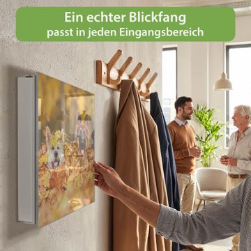 Bringe Ordnung und Eleganz in deinen Eingangsbereich mit dem banjado Schlüsselkasten Motiv Motiv Wayne und Wanda. Die moderne Schlüsselbox kombiniert funktionales Design mit hochwertiger Verarbeitung und wird so zu einem echten Hingucker in Flur, Büro oder Ferienwohnung. ✅ Stilvolle Schlüsselaufbewahrung mit Glasfront im Motiv Motiv Wayne und Wanda Der Design-Schlüsselkasten Motiv Motiv Wayne und Wanda bietet Platz für bis zu 50 Schlüssel, die auf 5 stabilen Reihen mit je 10 Haken übersichtlich verstaut werden. Mit seinen kompakten Maßen von 30 x 30 x 5 cm passt die Schlüsselbox perfekt auch in kleinere Räume. Der weiß lackierte Stahlkorpus mit rechts angeschlagenem Türscharnier harmoniert mit der Glasfront und fügt sich nahtlos in jedes Wohnambiente ein. Ob als Schlüsselorganizer für Zuhause oder als praktische Lösung für Büros, Praxen und Gewerbe, der banjado Schlüsselkasten sorgt für Ordnung und Übersicht. Dank der magnetischen, mit Kreidestiften beschreibbaren Glasfront kannst du Notizen anheften oder Termine direkt auf der Oberfläche festhalten. Die Schlüsselbox Motiv Motiv Wayne und Wanda zur Wandmontage wird inklusive Befestigungsmaterial geliefert und ist schnell angebracht. So hast du deine Schlüssel jederzeit griffbereit und zugleich stilvoll verstaut. Mit diesem banjado Schlüsselkasten Motiv Motiv Wayne und Wanda kombinierst du praktische Aufbewahrung mit stilvollem Wohndesign. Ob privat oder geschäftlich, die Schlüsselbox sorgt für mehr Ordnung, Übersicht und ein wohnliches Ambiente.Vorteile im Überblick