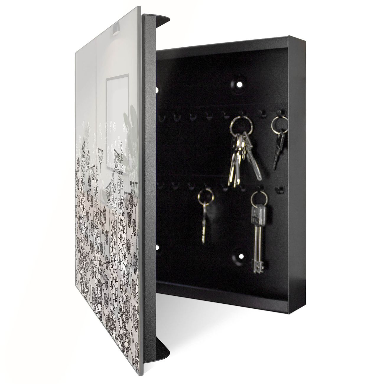 Bringe Ordnung und Eleganz in deinen Eingangsbereich mit dem banjado Schlüsselkasten Motiv Motiv Wegesrand. Die moderne Schlüsselbox kombiniert funktionales Design mit hochwertiger Verarbeitung und wird so zu einem echten Hingucker in Flur, Büro oder Ferienwohnung. ✅ Stilvolle Schlüsselaufbewahrung mit Glasfront im Motiv Motiv Wegesrand Der Design-Schlüsselkasten Motiv Motiv Wegesrand bietet Platz für bis zu 50 Schlüssel, die auf 5 stabilen Reihen mit je 10 Haken übersichtlich verstaut werden. Mit seinen kompakten Maßen von 30 x 30 x 5 cm passt die Schlüsselbox perfekt auch in kleinere Räume. Der schwarz lackierte Stahlkorpus mit rechts angeschlagenem Türscharnier harmoniert mit der Glasfront und fügt sich nahtlos in jedes Wohnambiente ein. Ob als Schlüsselorganizer für Zuhause oder als praktische Lösung für Büros, Praxen und Gewerbe, der banjado Schlüsselkasten sorgt für Ordnung und Übersicht. Dank der magnetischen, mit Kreidestiften beschreibbaren Glasfront kannst du Notizen anheften oder Termine direkt auf der Oberfläche festhalten. Die Schlüsselbox Motiv Motiv Wegesrand zur Wandmontage wird inklusive Befestigungsmaterial geliefert und ist schnell angebracht. So hast du deine Schlüssel jederzeit griffbereit und zugleich stilvoll verstaut. Mit diesem banjado Schlüsselkasten Motiv Motiv Wegesrand kombinierst du praktische Aufbewahrung mit stilvollem Wohndesign. Ob privat oder geschäftlich, die Schlüsselbox sorgt für mehr Ordnung, Übersicht und ein wohnliches Ambiente.Vorteile im Überblick
