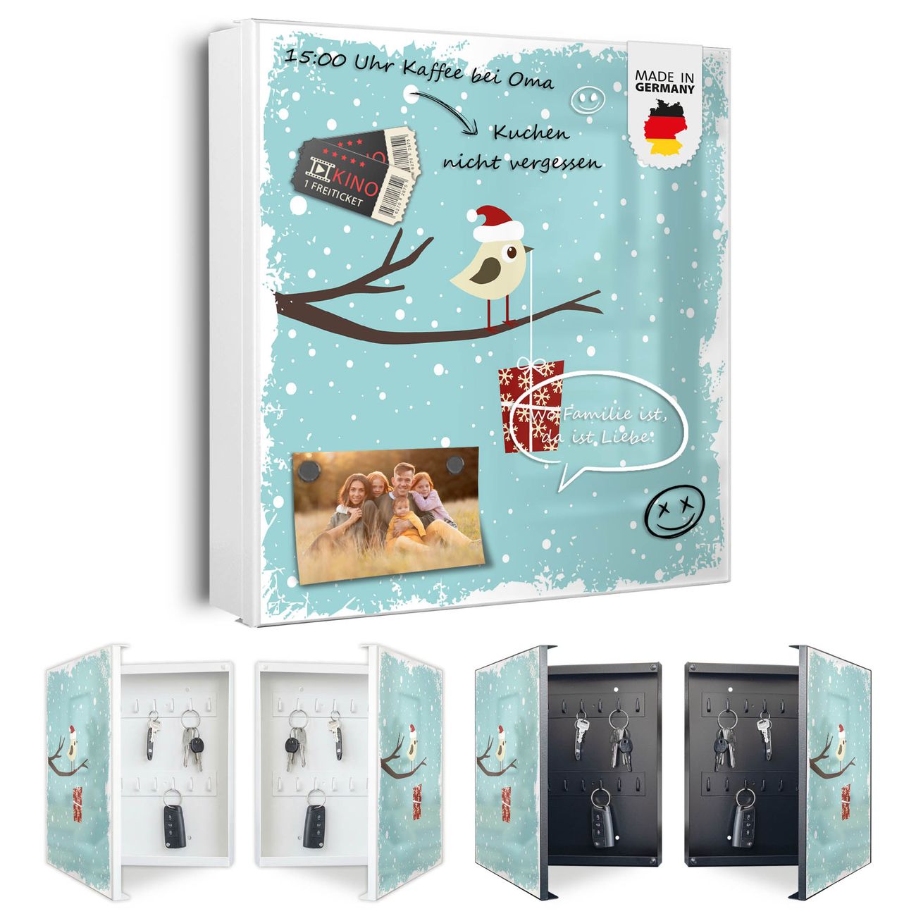 Bringe Ordnung und Eleganz in deinen Eingangsbereich mit dem banjado Schlüsselkasten Motiv Motiv Weihnachten. Die moderne Schlüsselbox kombiniert funktionales Design mit hochwertiger Verarbeitung und wird so zu einem echten Hingucker in Flur, Büro oder Ferienwohnung. ✅ Stilvolle Schlüsselaufbewahrung mit Motiv Motiv Weihnachten Der Design-Schlüsselkasten Motiv Motiv Weihnachten bietet Platz für bis zu 32 Schlüssel, die auf 4 stabilen Reihen mit je 8 Haken übersichtlich verstaut werden. Mit seinen kompakten Maßen von 30 x 30 x 5 cm passt die Schlüsselbox perfekt auch in kleinere Räume. Der weiß lackierte Stahlkorpus mit rechts angeschlagenem Türscharnier harmoniert mit gedruckten Folie auf der Front und fügt sich nahtlos in jedes Wohnambiente ein. Ob als Schlüsselorganizer für Zuhause oder als praktische Lösung für Büros, Praxen und Gewerbe, der banjado Schlüsselkasten sorgt für Ordnung und Übersicht. Dank der magnetischen, mit Kreidestiften beschreibbaren Folie auf der Front kannst du Notizen anheften oder Termine direkt auf der Oberfläche festhalten. Die Schlüsselbox Motiv Motiv Weihnachten zur Wandmontage wird inklusive Befestigungsmaterial geliefert und ist schnell angebracht. So hast du deine Schlüssel jederzeit griffbereit und zugleich stilvoll verstaut. Mit diesem banjado Schlüsselkasten Motiv Motiv Weihnachten kombinierst du praktische Aufbewahrung mit stilvollem Wohndesign. Ob privat oder geschäftlich, die Schlüsselbox sorgt für mehr Ordnung, Übersicht und ein wohnliches Ambiente.Vorteile im Überblick