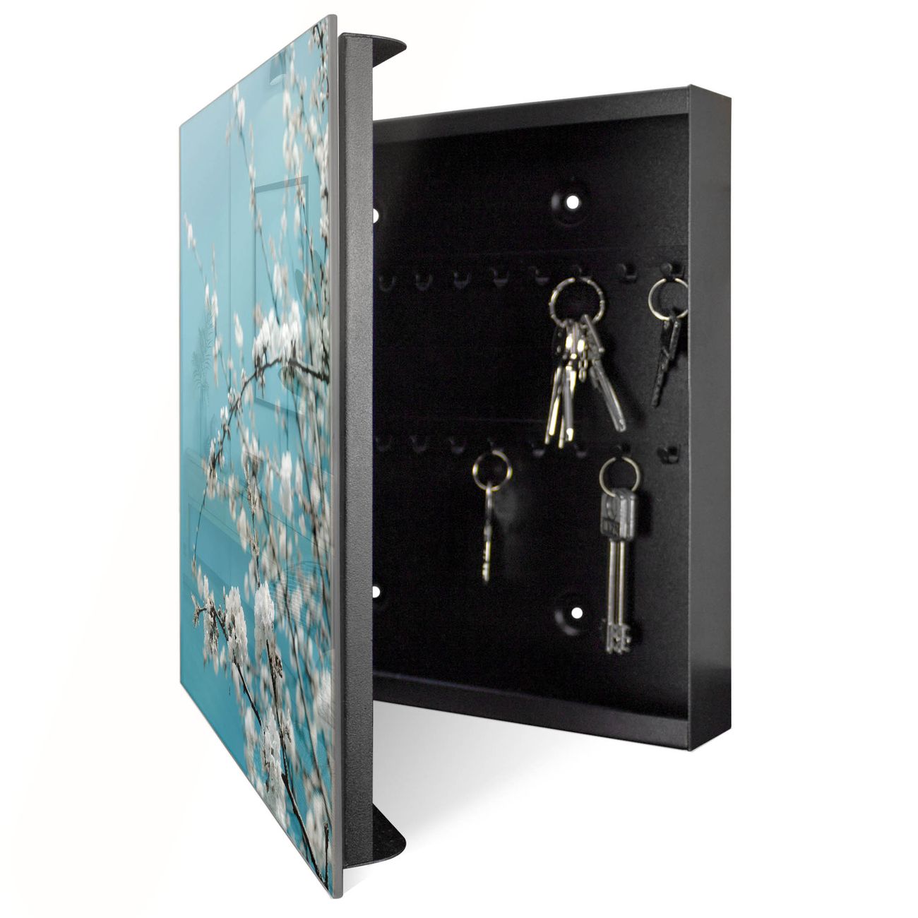 Schlüsselkasten Glas Motiv weiße Kirschblüten